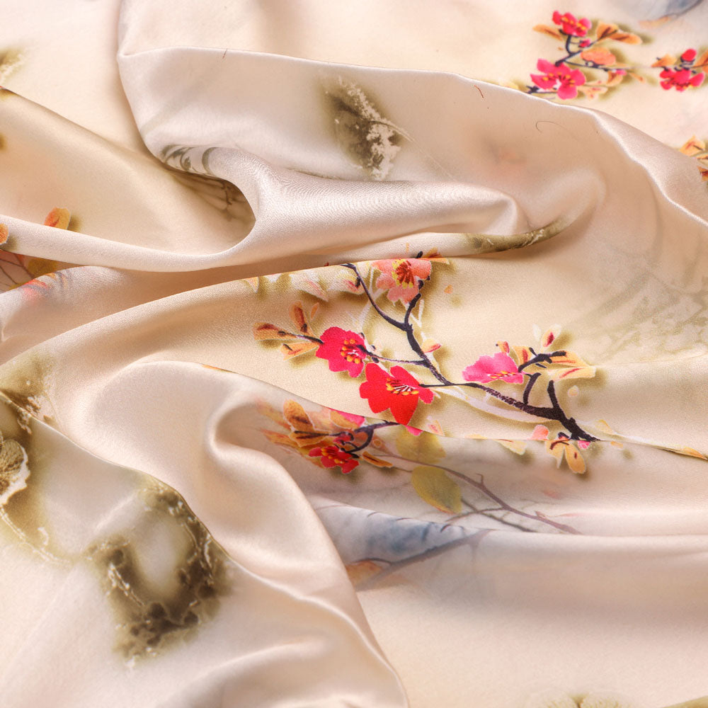 Floral digital printed fabric in Japan satin from FAB VOGUE Studio