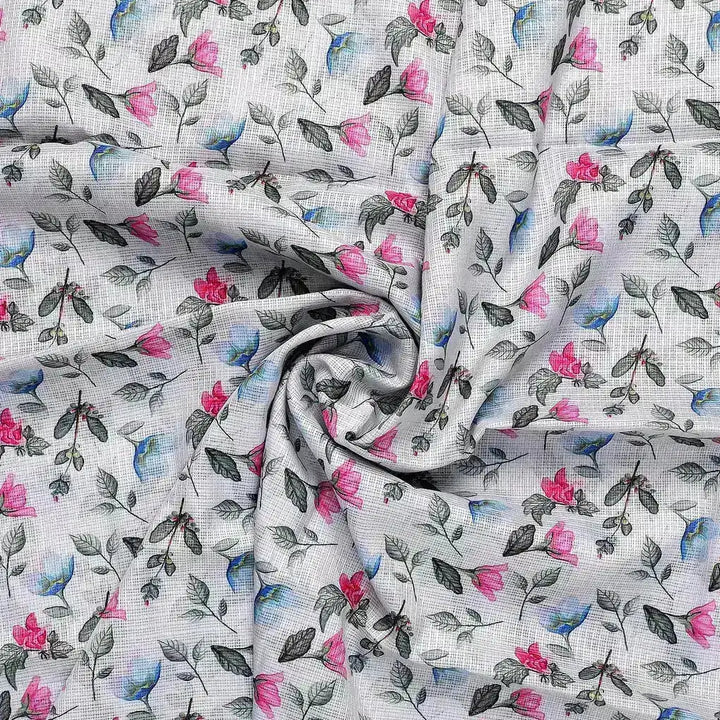 Flower With Olive Leaf Digital Printed Fabric - Kota Doria