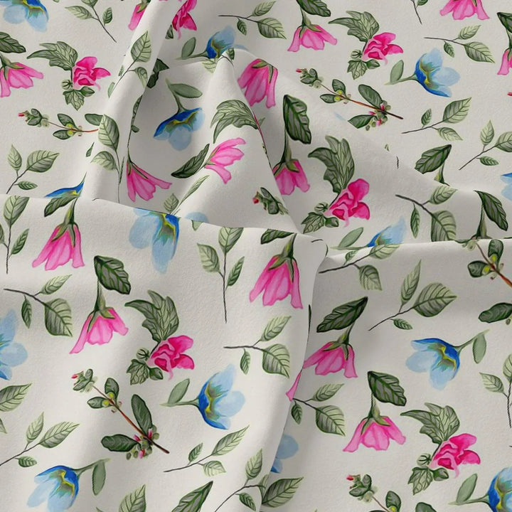 Flower With Olive Leaf Digital Printed Fabric - Rayon