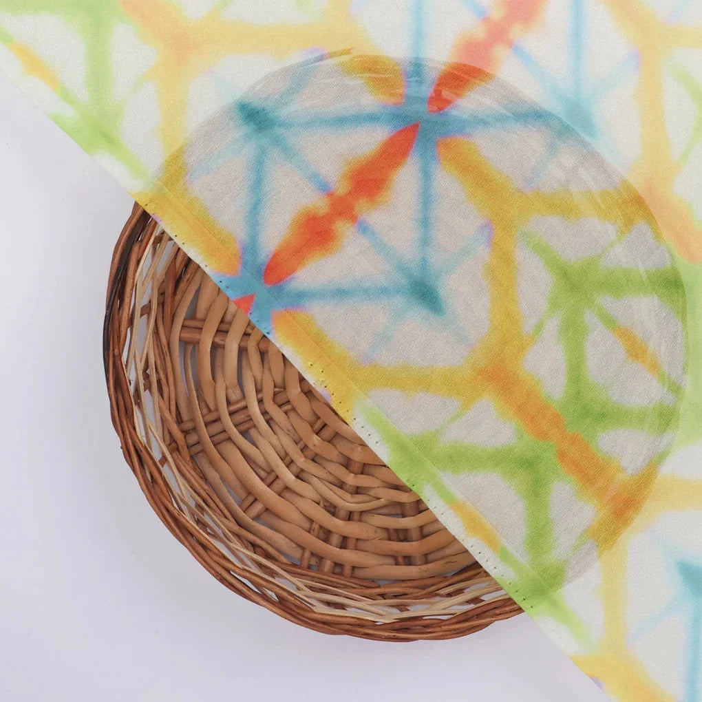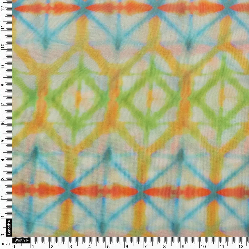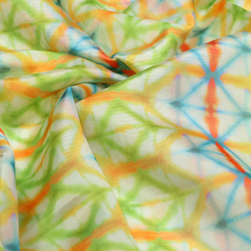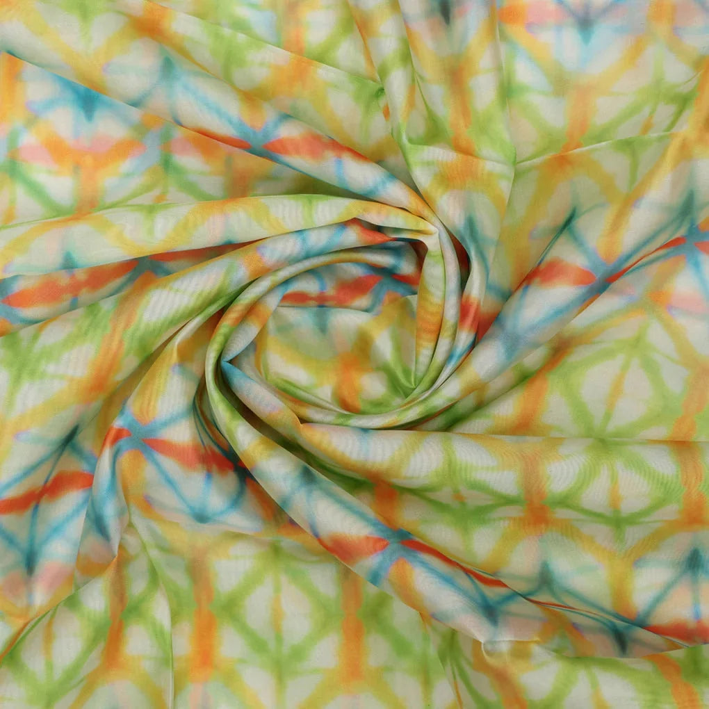 Indulge in the ethereal beauty of our Geometric Organza Print fabric, meticulously crafted by FAB VOGUE Studio. This exquisite organza fabric features an eye-catching geometric design in a vibrant palette of multicolor, green, yellow, orange, and blue. Its delicate texture and flowing drape make it an ideal choice for elegant curtains, flowing dresses, and sophisticated home dacor projects. Elevate your space with the timeless charm of our Geometric Organza Print fabric.