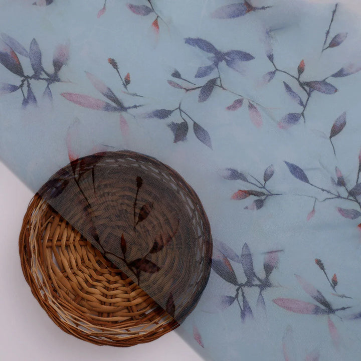 Gorgeous green leaves digital printed organza fabric by FAB VOGUE Studio