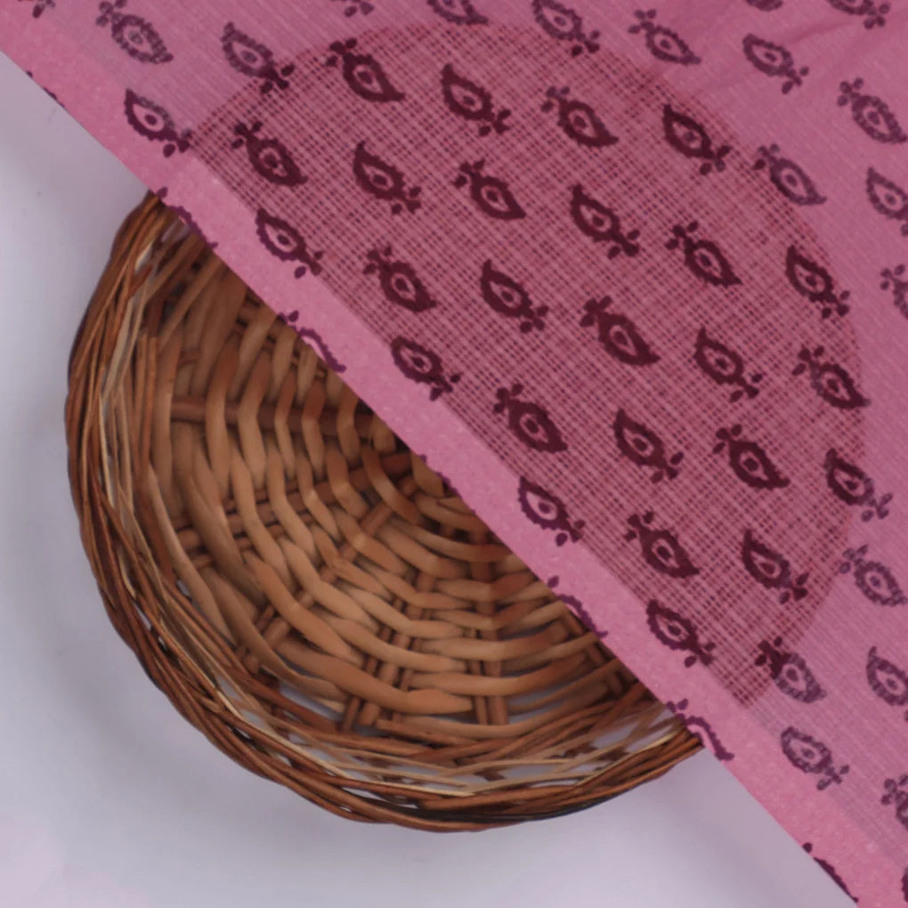Introducing our exquisite motif butti print digital fabric from FAB VOGUE Studio, crafted from luxurious Kota Doria. This vibrant fabric showcases an intricate damask design in captivating shades of purple and pink, adding a touch of elegance to any creation. Its soft and breathable texture makes it perfect for creating flowing garments, home decore, and accessories that will turn heads and elevate your style.