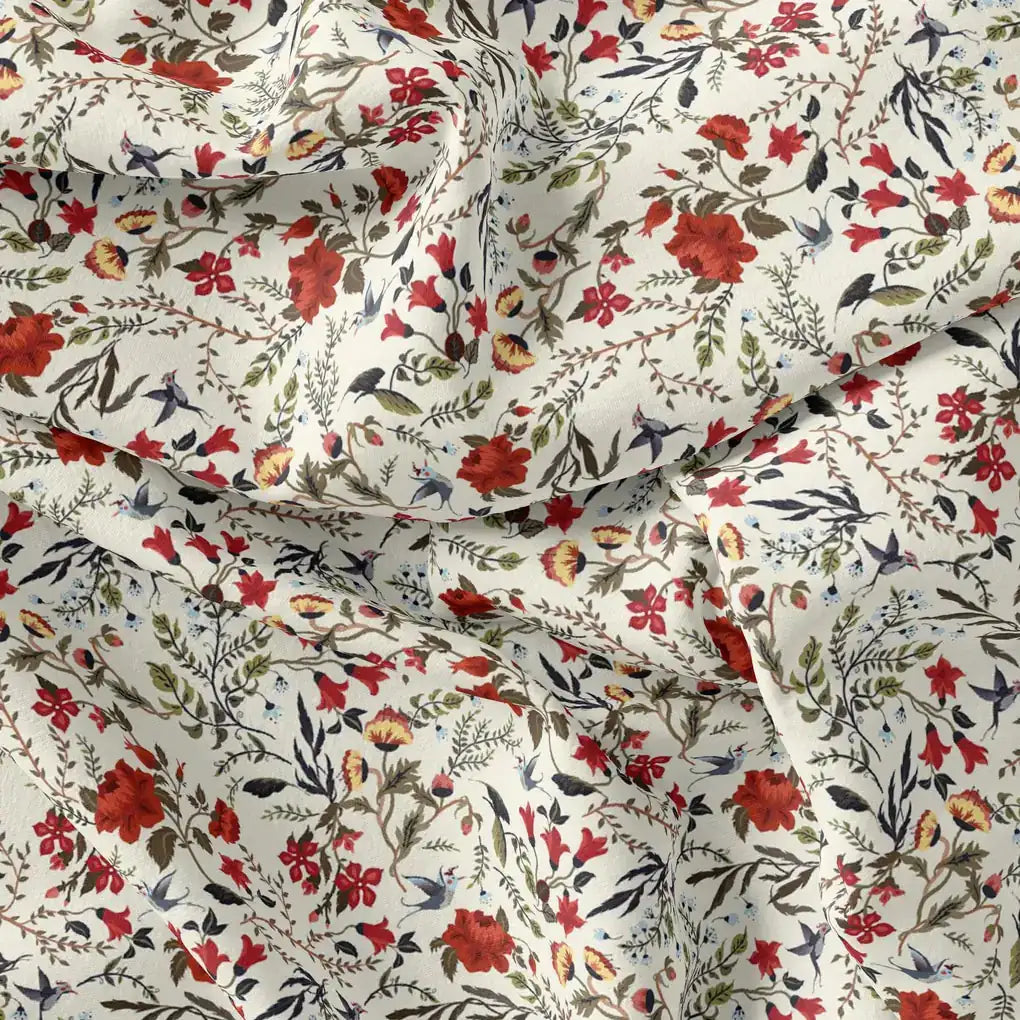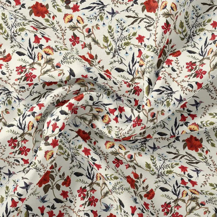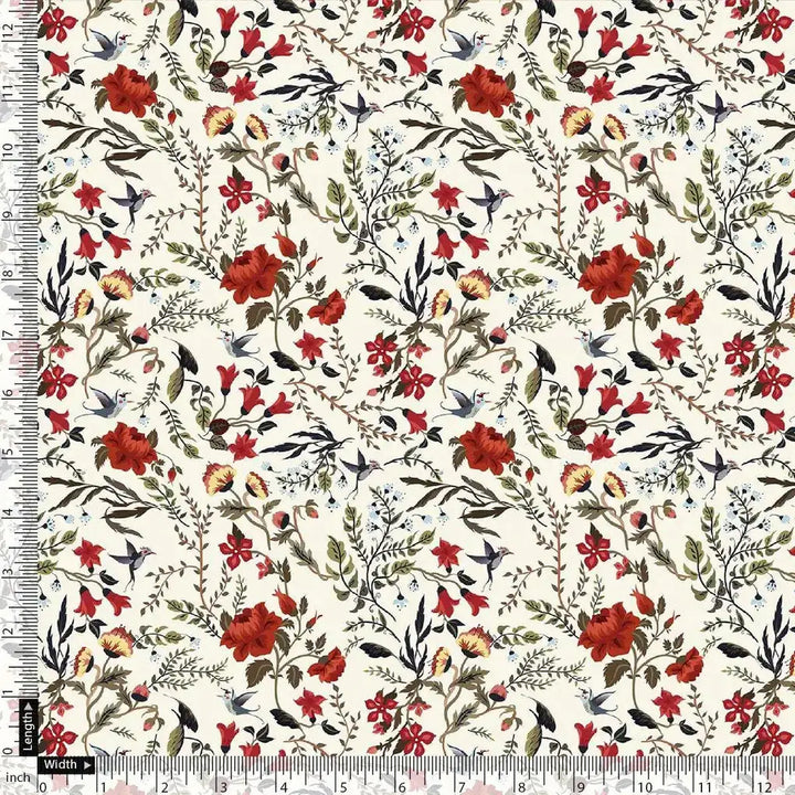 Jungle Wally Of Flower With Humming Bird Digital Printed Fabric - Weightless