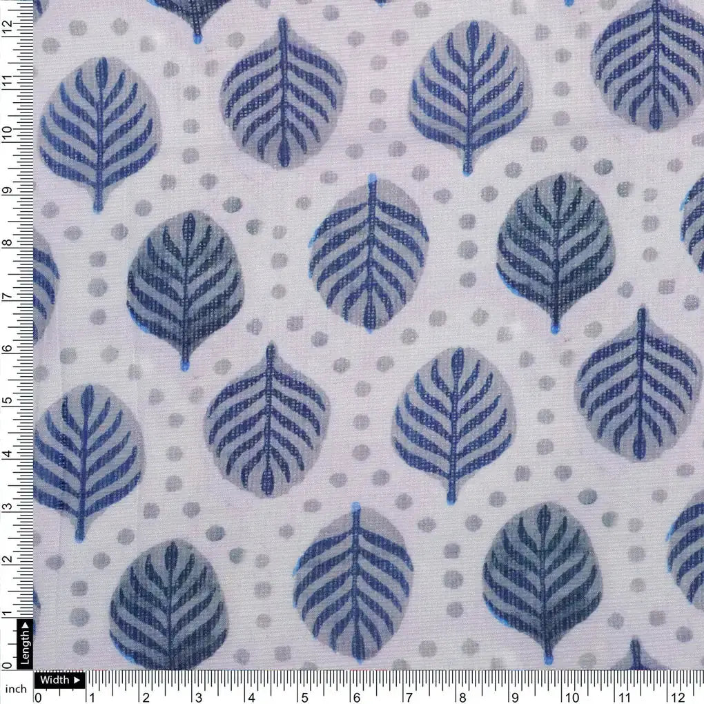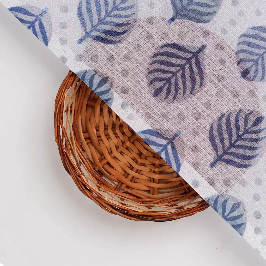 FAB VOGUE Studio - Kota Doria Digital Printed Polyester Fabric - White with Blue Leaves