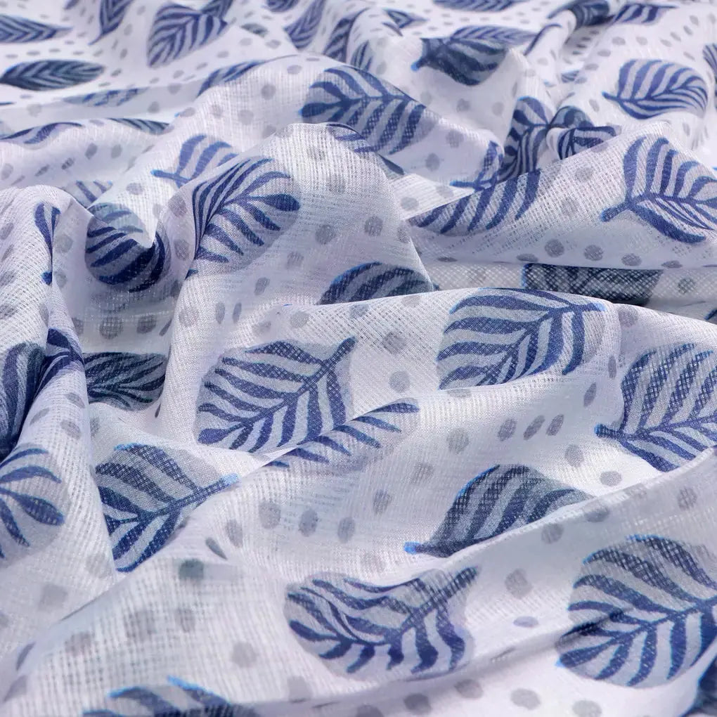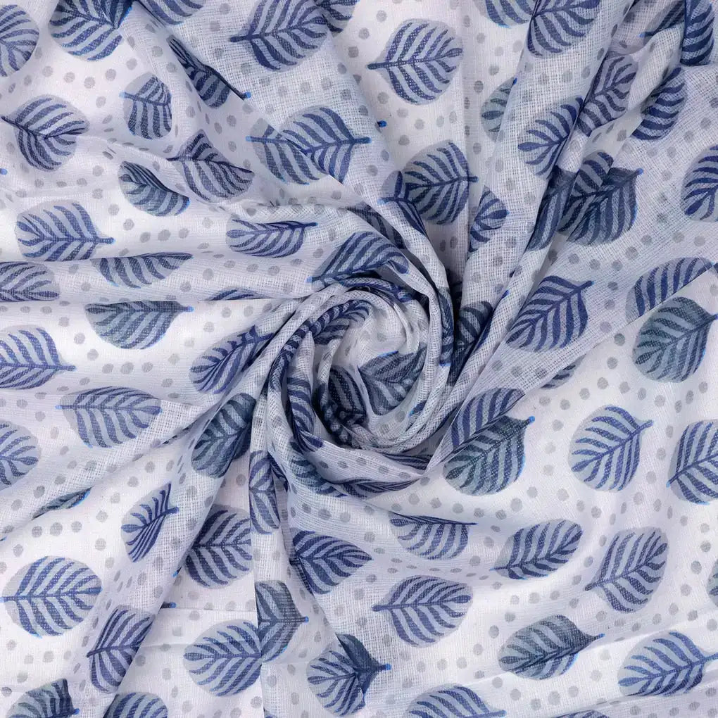 FAB VOGUE Studio - Kota Doria Digital Printed Polyester Fabric - White with Blue Leaves – 70a4437copy2