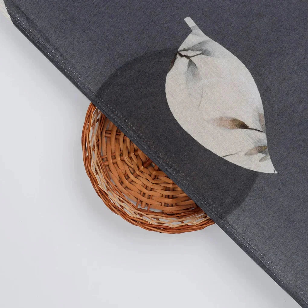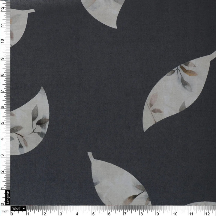 Leaves Print On Dark Grey Base Digital Printed Fabric