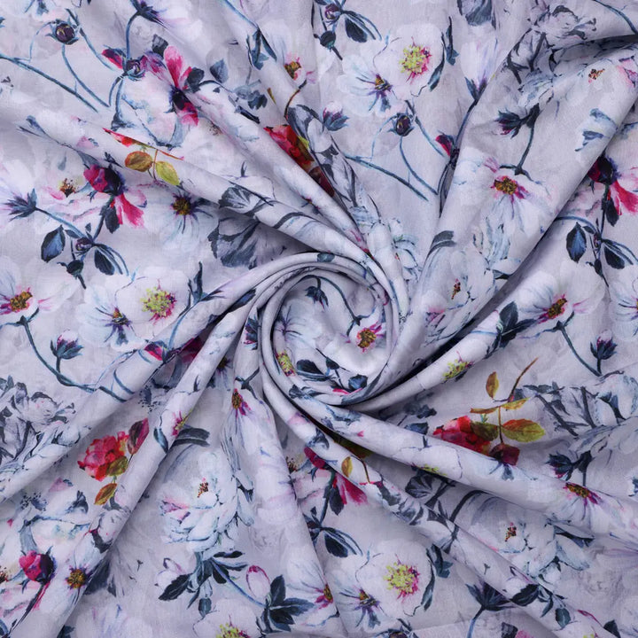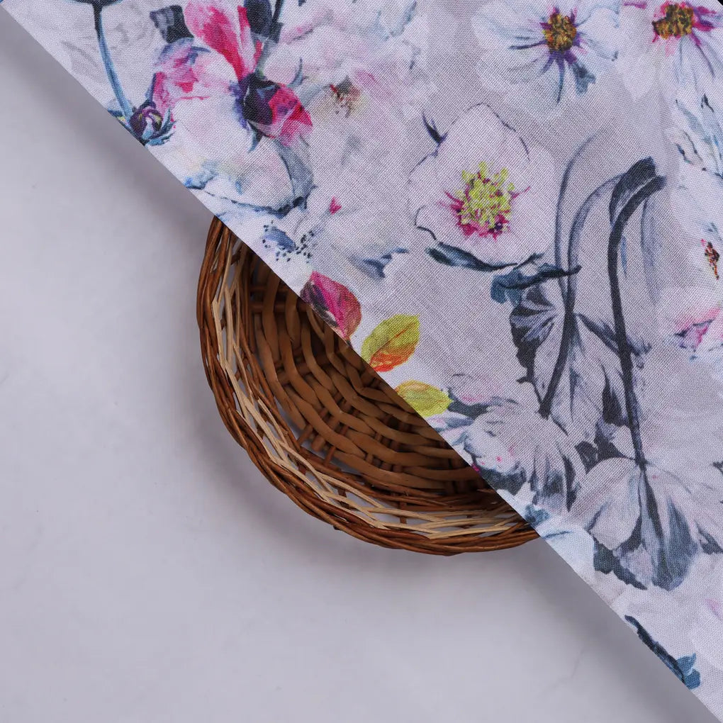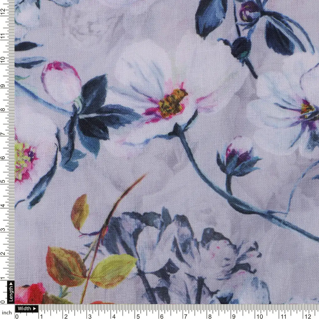 Lilac Floral Printed Linen Fabric