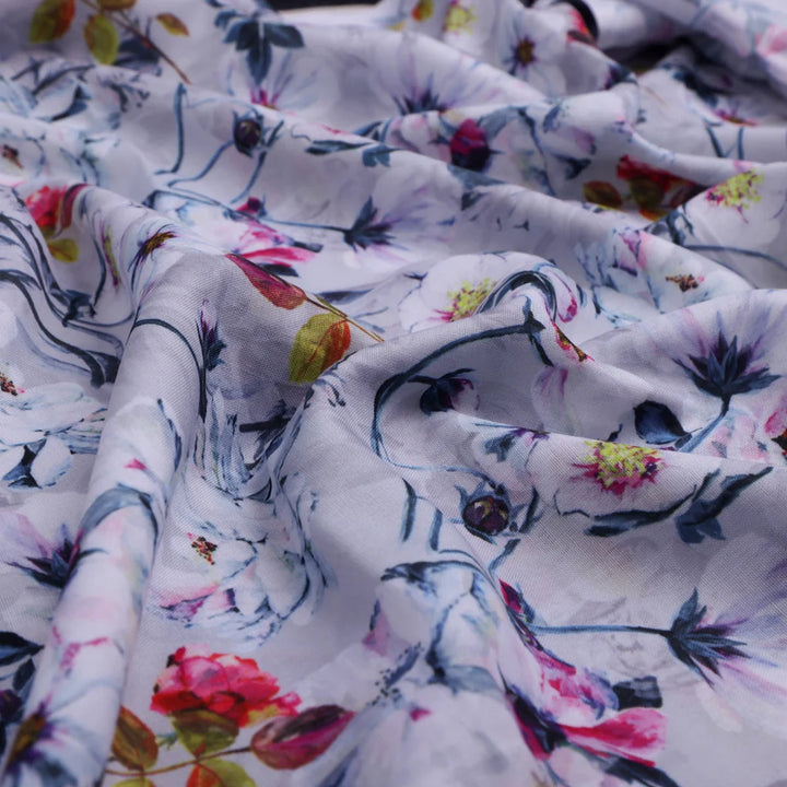 This beautiful lilac floral printed linen fabric is perfect for your next sewing project. This fabric is soft and lightweight, making it comfortable to wear all day long. It is also wrinkle resistant and easy to care for, making it a great choice for busy people. This fabric is perfect for making dresses, skirts, tops, and pants. It can also be used for home decor projects, such as curtains, pillows, and tablecloths.