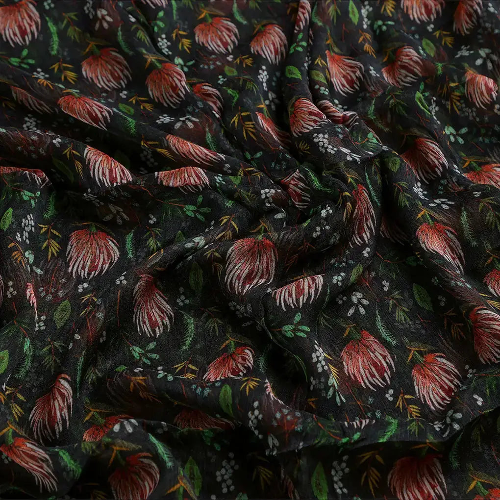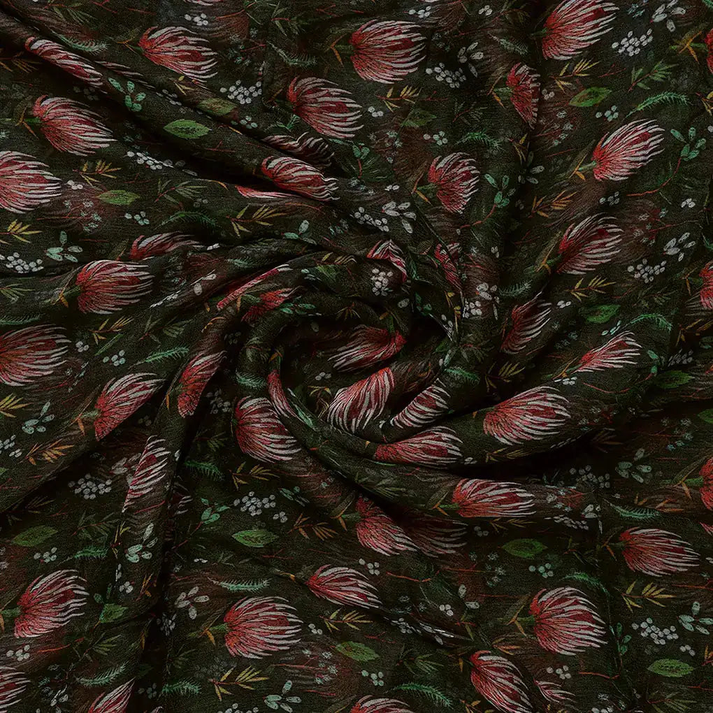Look beautiful and stylish in this Lovely Lotus Pure Chiffon Saree Printed Fabric from FAB VOGUE Studio. This fabric is made from high-quality Bemberg and is of Pure Chiffon material. It has a Decorative pattern in Black color that adds to the beauty of the fabric. Buy this fabric from FAB VOGUE Studio and make a statement.