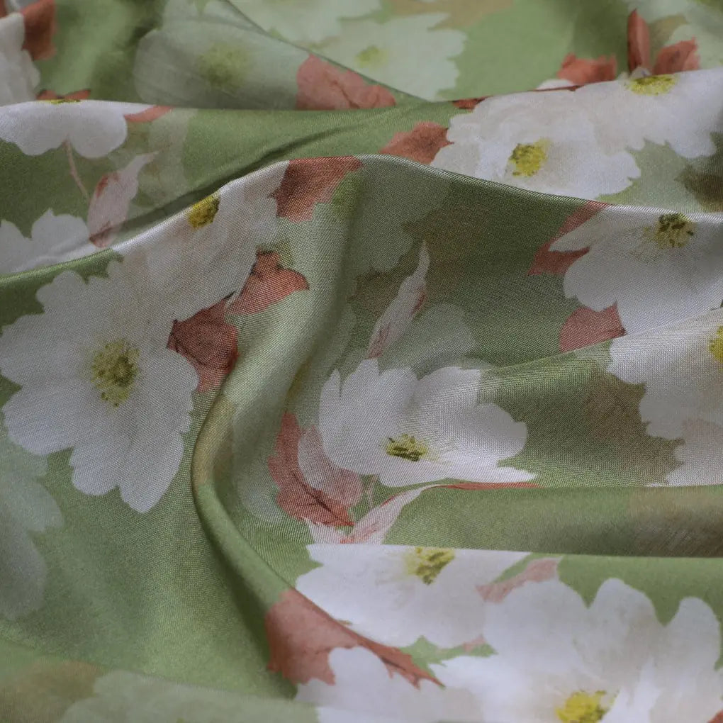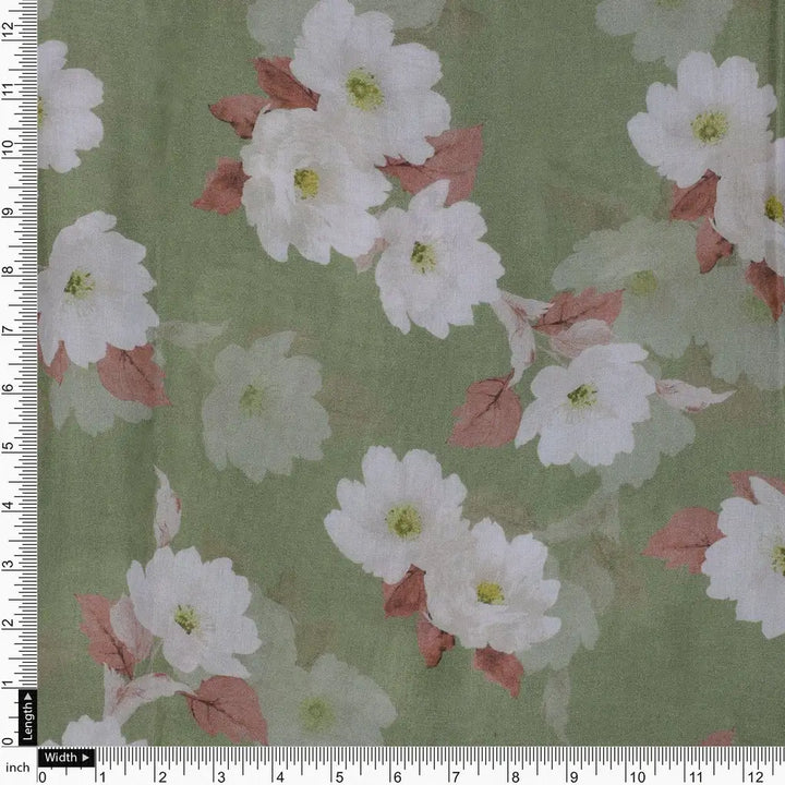 Lovely White Rose Digital Printed Fabric - Pure Muslin