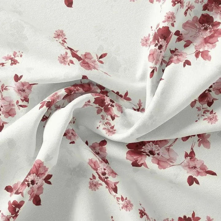 Maroon Flower Bunch Digital Printed Fabric - Muslin