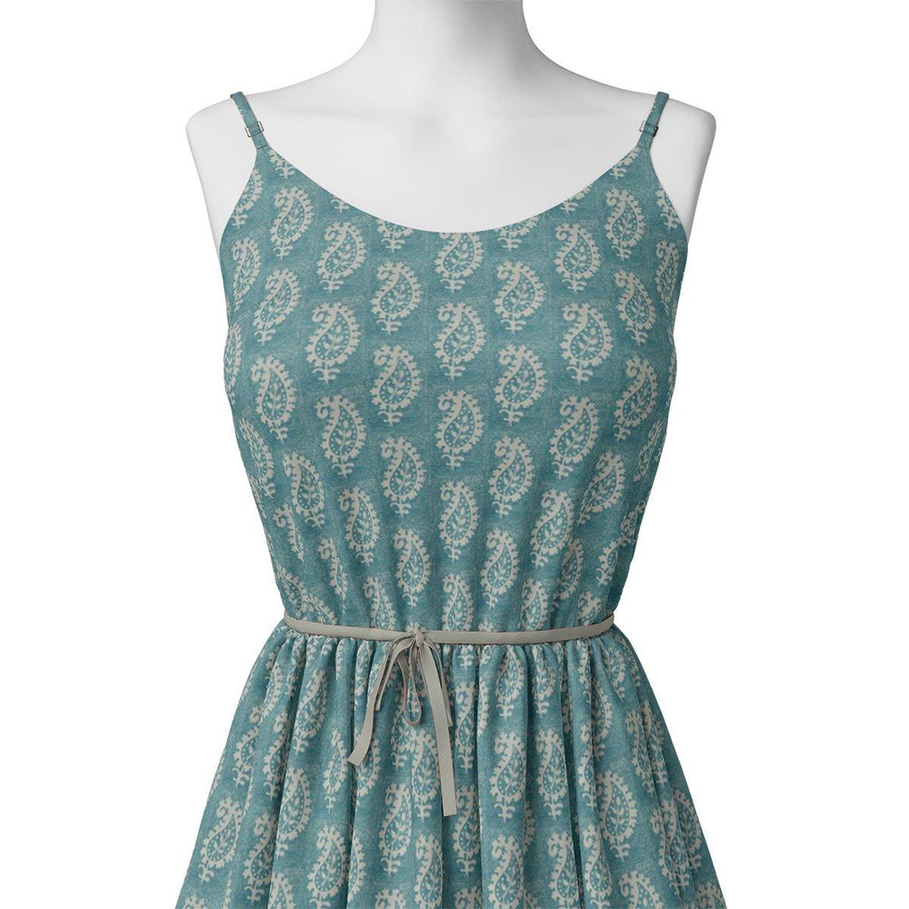Looking for something modern and stylish to add to your wardrobe? Look no further than the Morden Mango Leaves with Gumbo Colour Pure Cotton Digital Printed Fabric from FAB VOGUE Studio. Crafted from pure cotton, this fabric is soft and breathable, making it perfect for any season. The sky color and leaf pattern of this fabric will add a modern touch to any outfit. Whether you're looking for a dress, a skirt, or a blouse, this fabric is sure to be the perfect choice. Shop now at FAB VOGUE Studio and get the perfect fabric for your wardrobe.