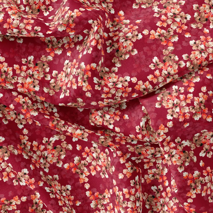 Most Attractive Red And Golden Ninebark Leaves Digital Printed Fabric