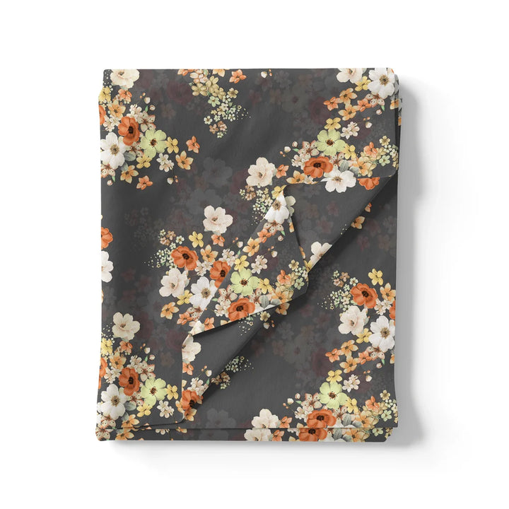 Multicolour Orchid Flower With Grey Background Digital Printed Fabric - Silk Crepe