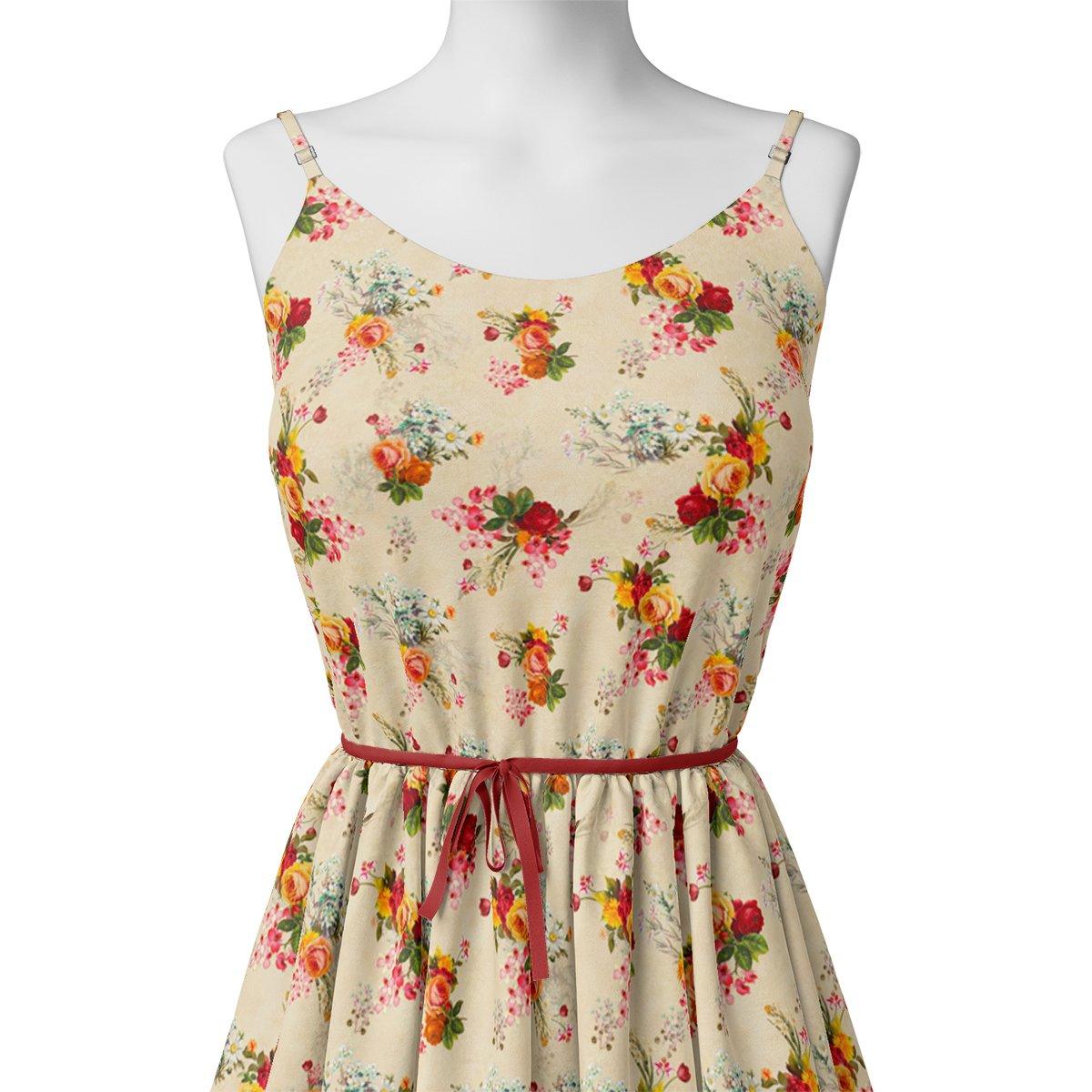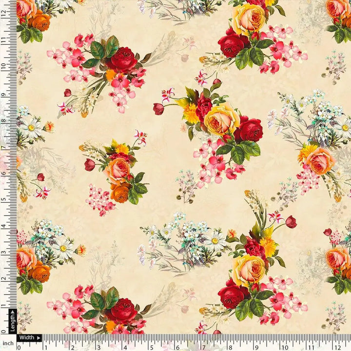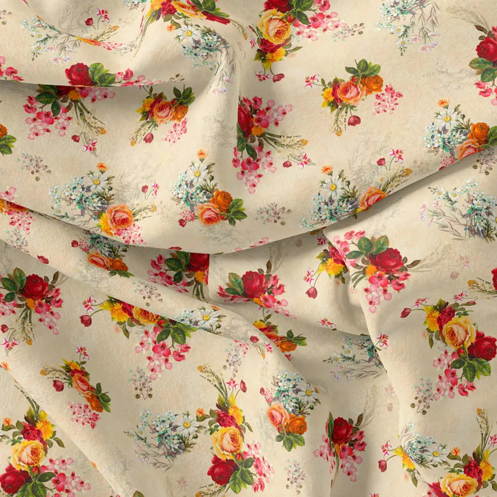 Multicolour Red And Yellow Roses Digital Printed Fabric