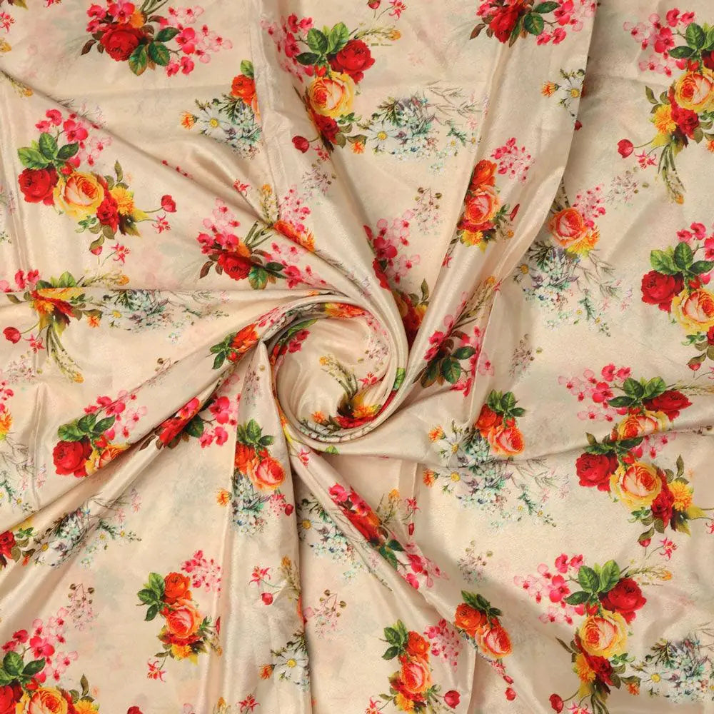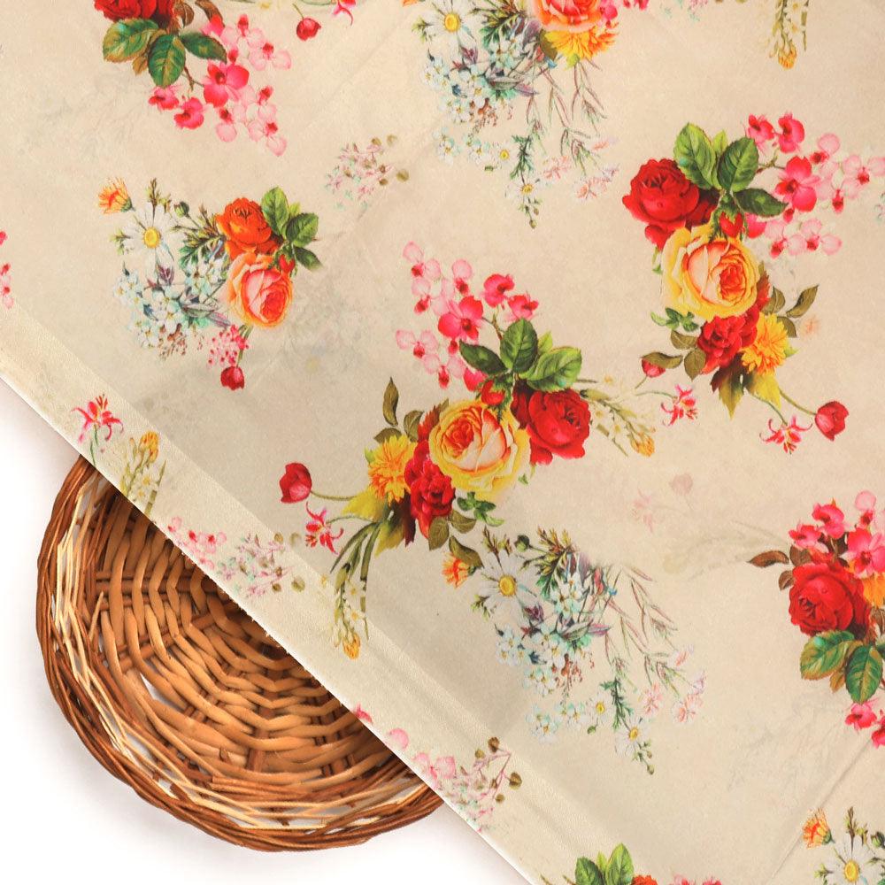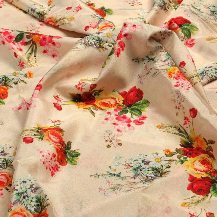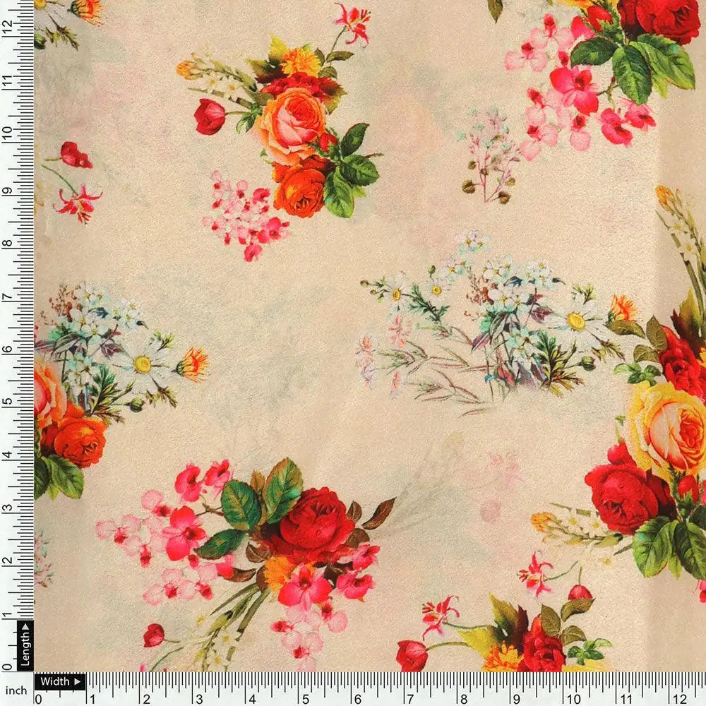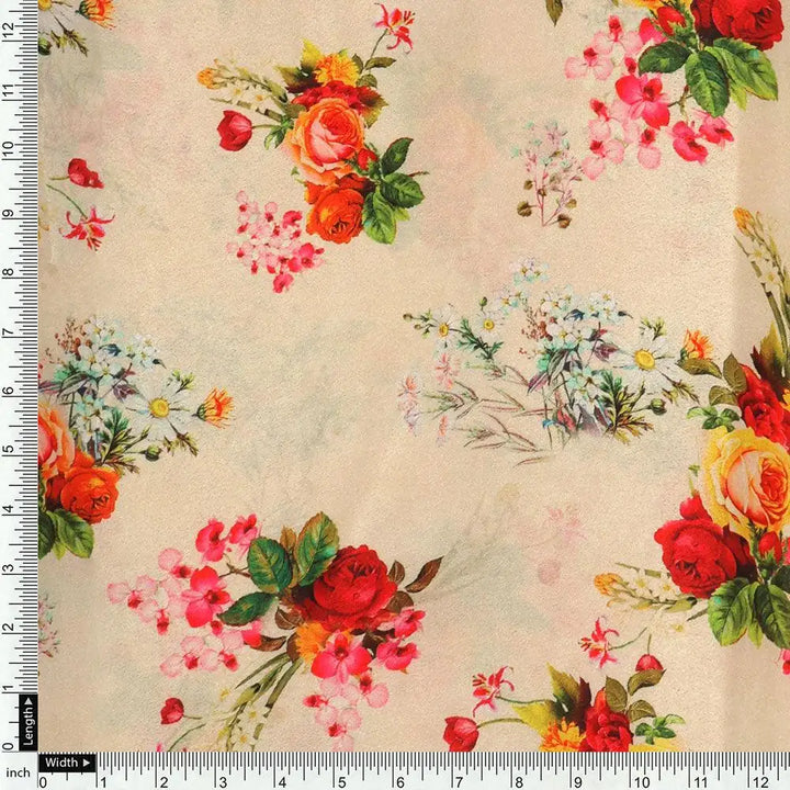 Multicolour Red And Yellow Roses Digital Printed Fabric - Silk Crepe