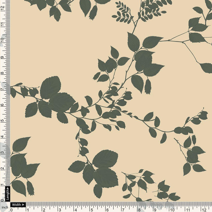 Olive Stalk And Leaves Digital Printed Fabric - Upada Silk