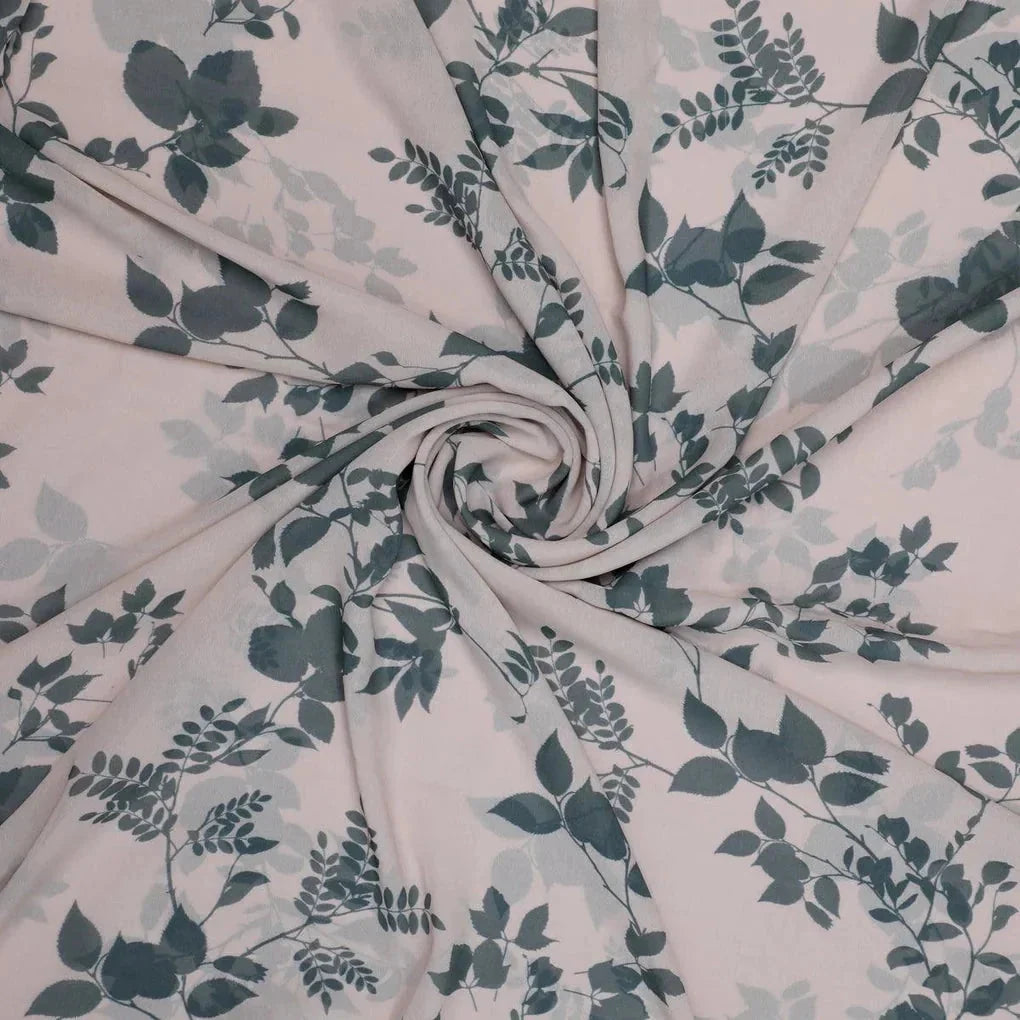 Are you looking for a lightweight Polyester Digital Printed Fabric for your next project? Look no further than Fab Vogue Studio's Olive Stalk And Leaves Weightless Gown Printed Fabric. This Off-White fabric features a beautiful leaf pattern that will bring your project to life. Made from quality Polyester, this fabric is lightweight and perfect for creating a variety of garments.
