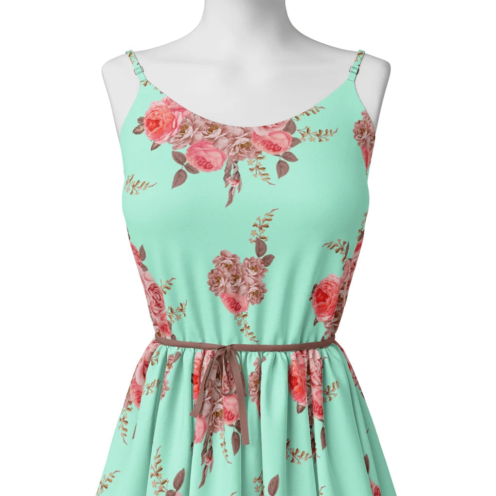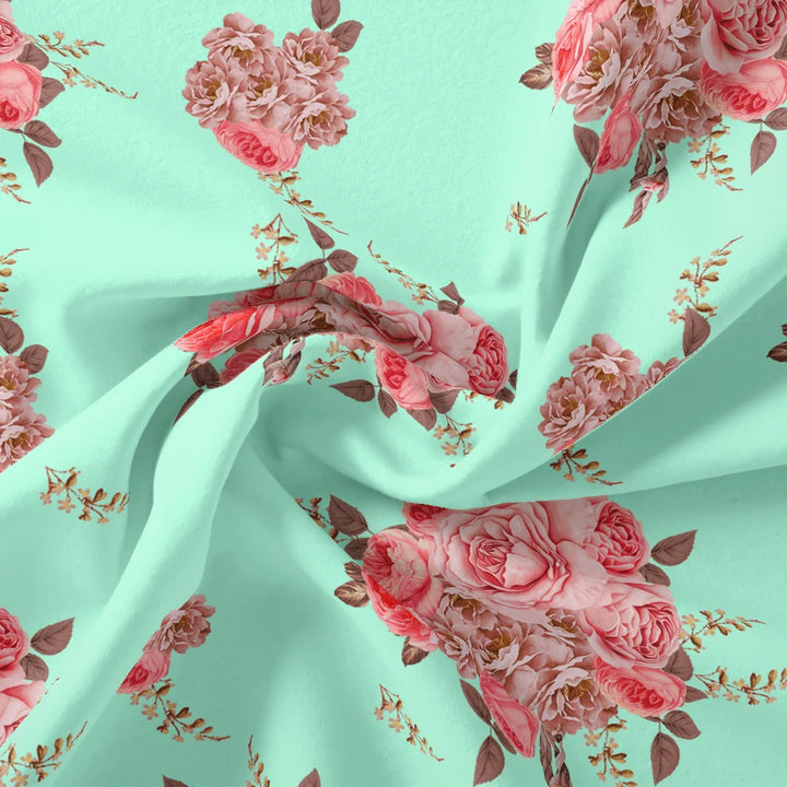 Pink Roses Brown Leaves Digital Printed Fabric