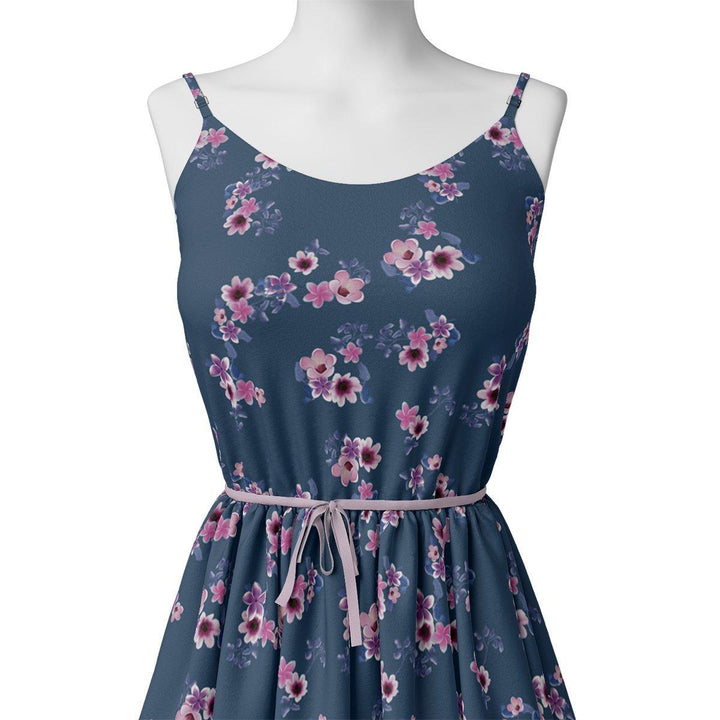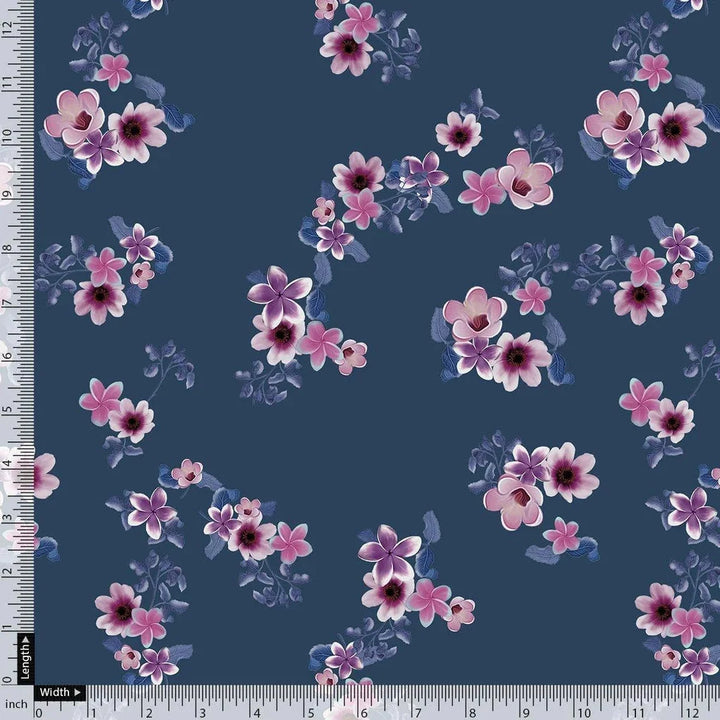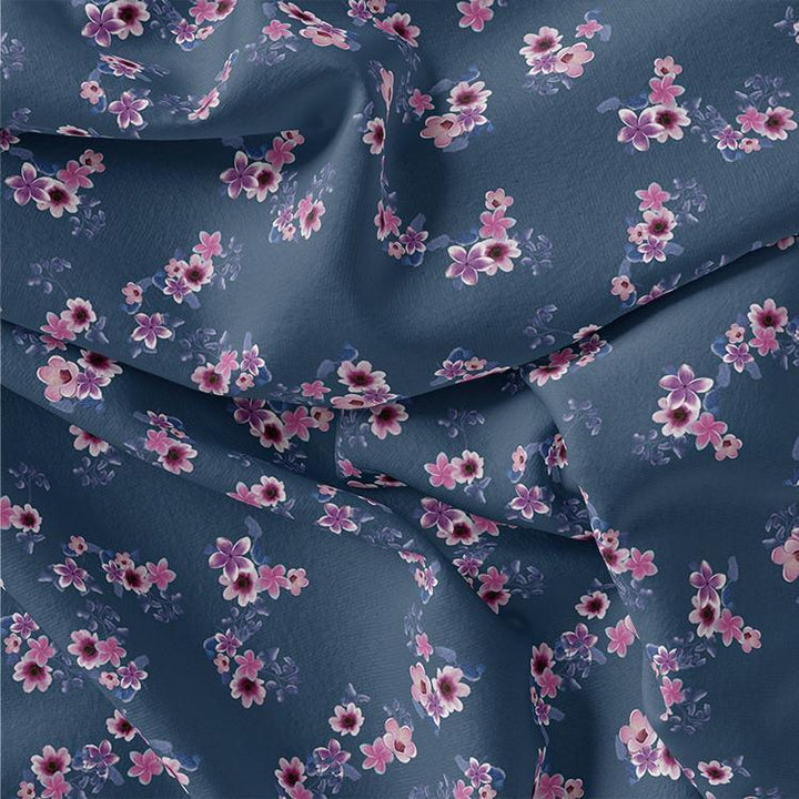 Pinkish Flowers With Neavy Blue Digital Printed Fabric - Rayon