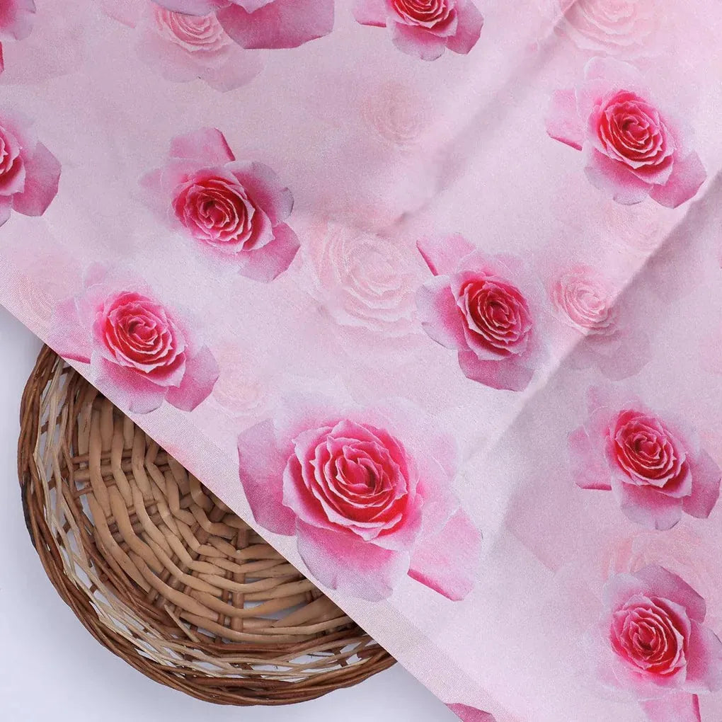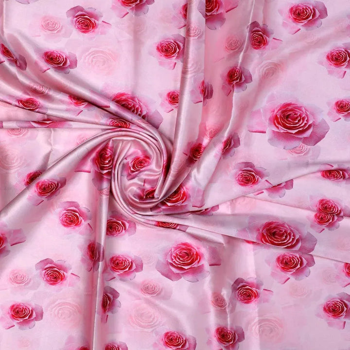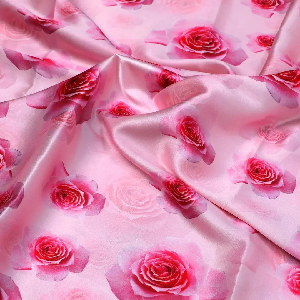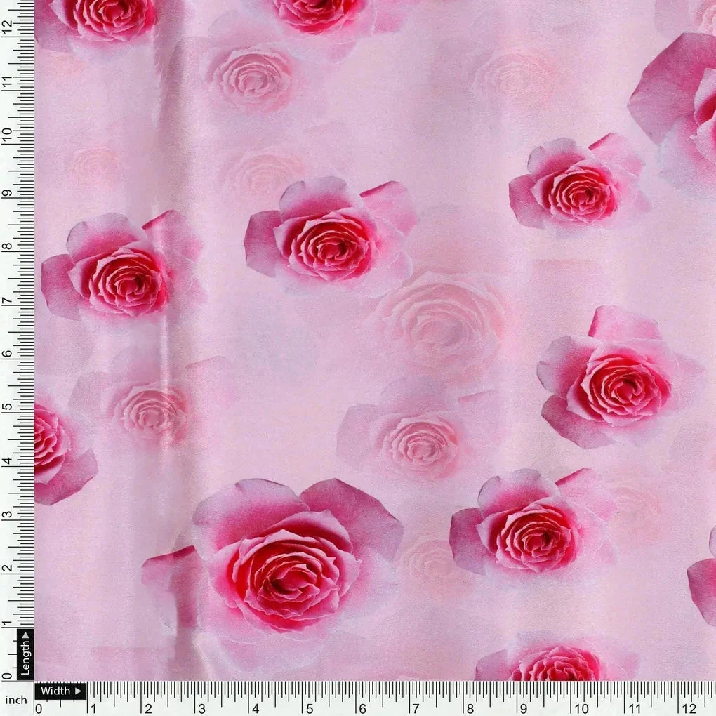 Pinkish Rose Allover Digital Printed Fabric - Japan Satin