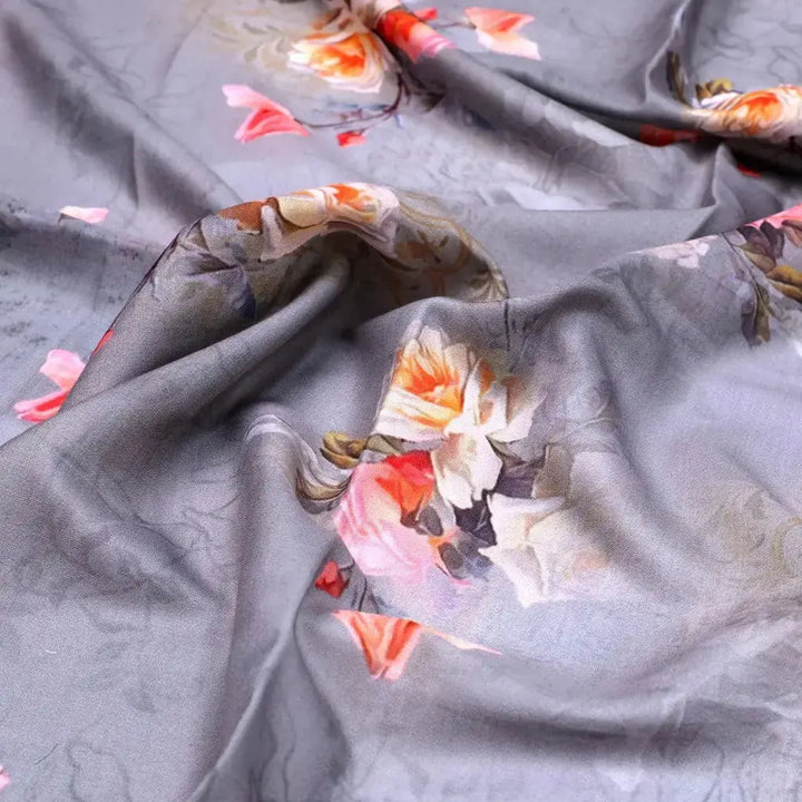 Pixel Floral Laying Over Grey Digital Printed Fabric