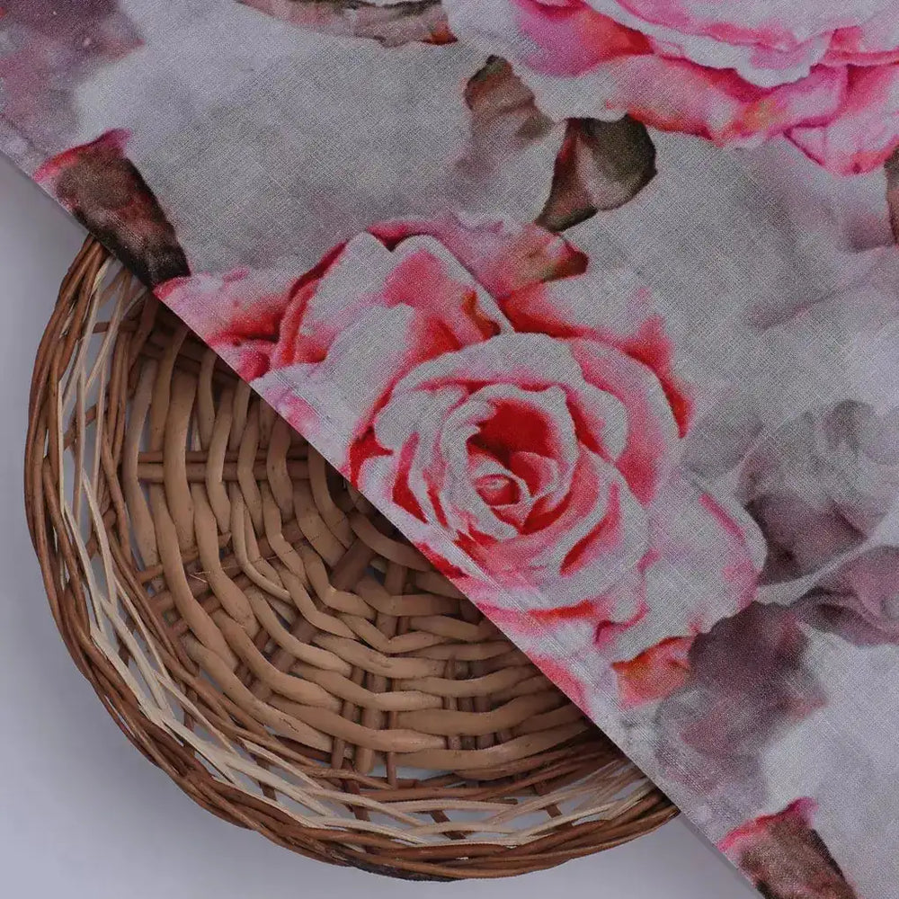Boost your wardrobe with the Rosegold Flower Pure Cotton Top Printed Fabric from FAB VOGUE Studio. This digitally printed fabric is made from pure cotton, giving it a luxurious feel. The pink fabric is covered with a beautiful floral pattern that will add a touch of elegance to your look. Enjoy the comfort and quality of this fabric, perfect for creating stylish tops. Get yours today from FAB VOGUE Studio.
