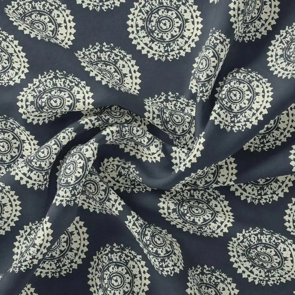 Seamless Rounded Suzani Art Digital Printed Fabric - Kora Silk