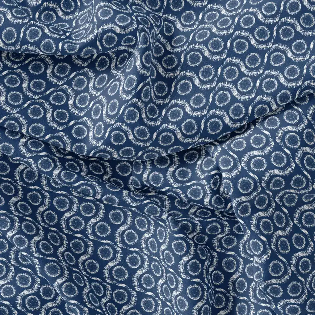 Seamless Vermicular Pattern With Blue Colour Digital Printed Fabric - Upada Silk
