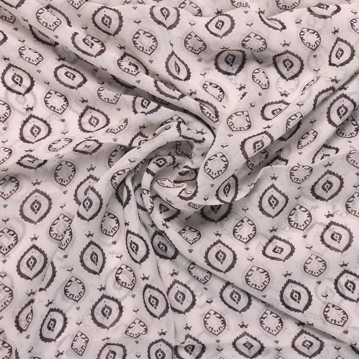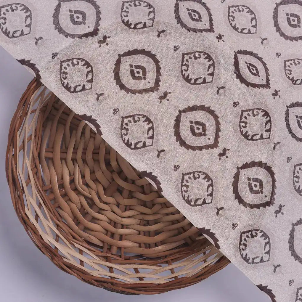 Looking for something special to add to your wardrobe? Look no further than FAB VOGUE Studio's Small Abstract Motif Pure Georgette Clothing Printed Fabric! Crafted from pure georgette, this fabric is sure to give your outfit a luxurious feel. The brown color and Suzani pattern create a unique and stylish look that will be sure to turn heads. Whether you're looking for a dress, skirt, top, or even a scarf, this fabric is perfect for any occasion.