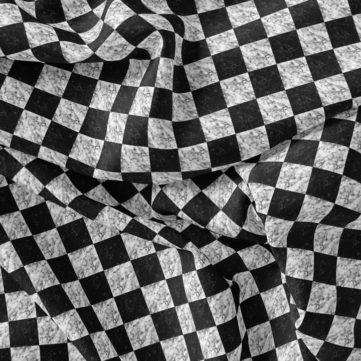Smoky Black And White Cheques Colour Digital Printed Fabric