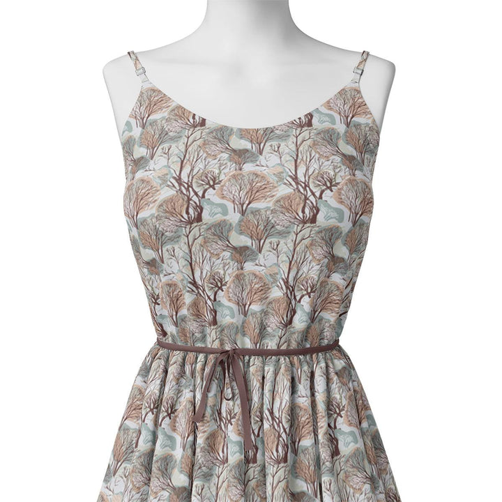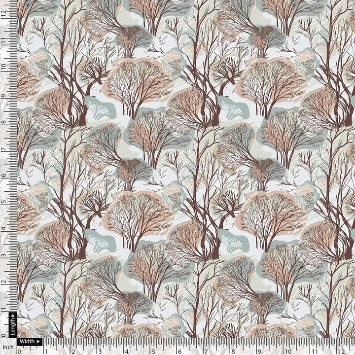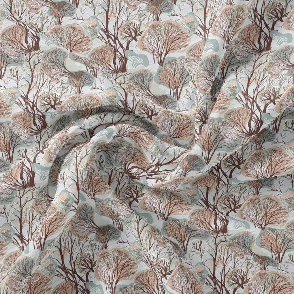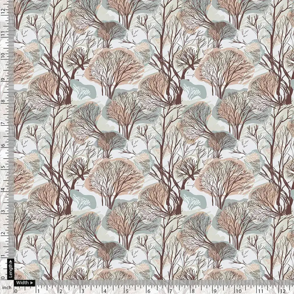 Suzani Summer Brown Tree Digital Printed Fabric - Muslin