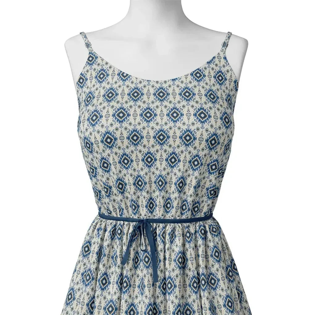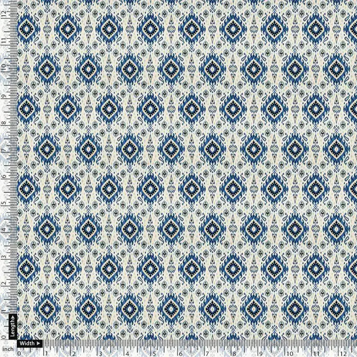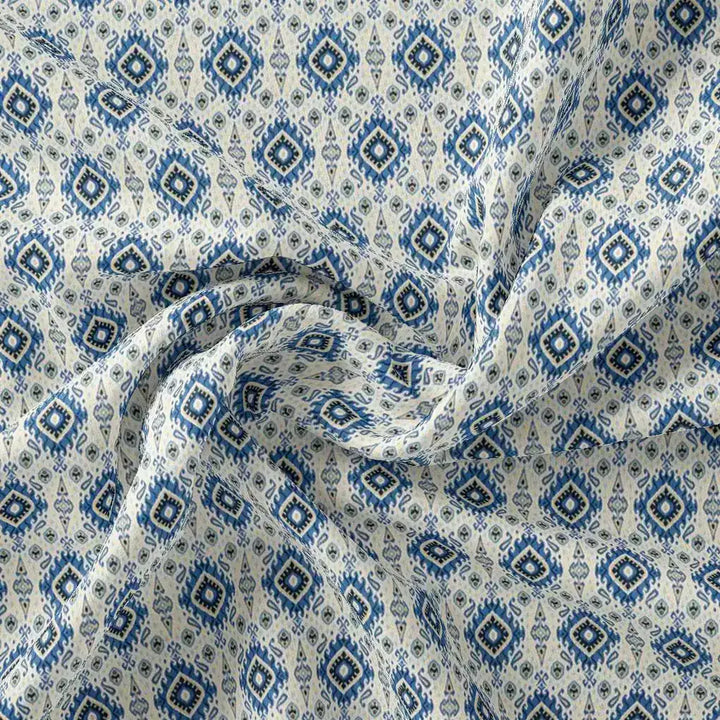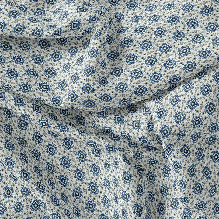 Tiny Blue Medallion Motif Digital Printed Fabric - Japan Satin