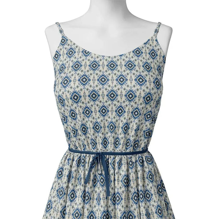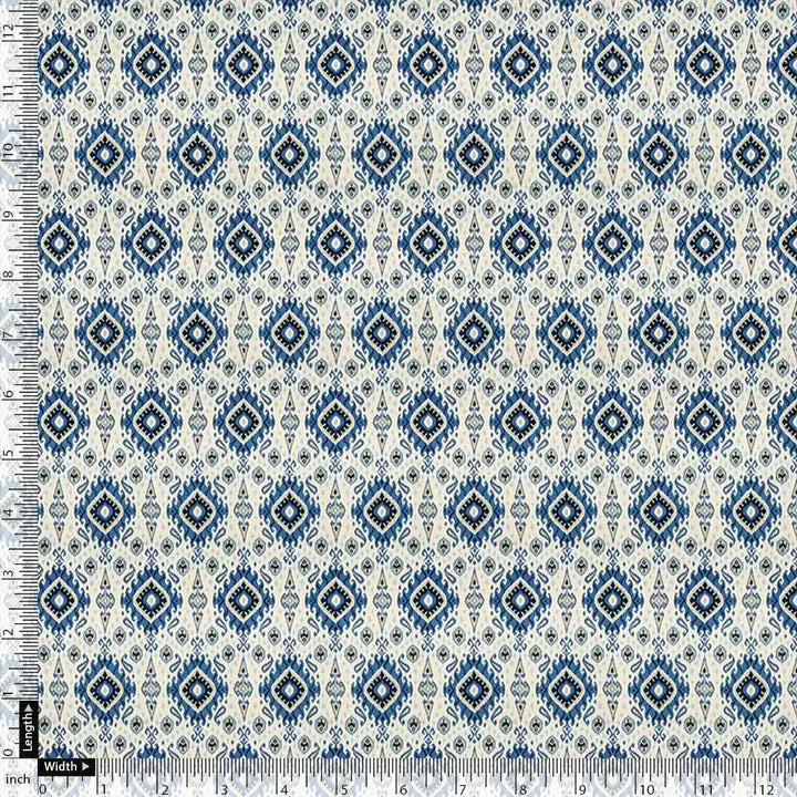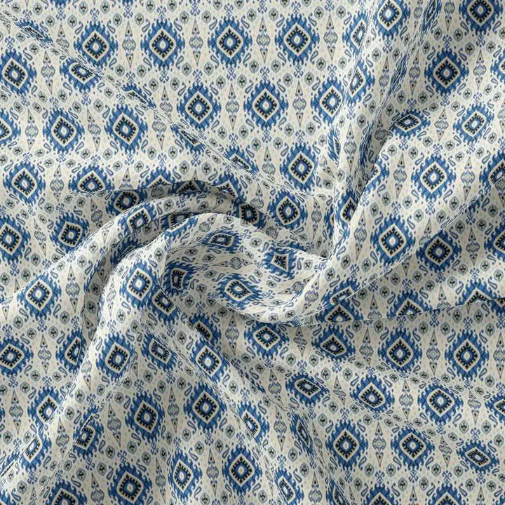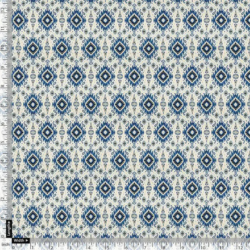 Tiny Blue Medallion Motif Digital Printed Fabric - Pure Cotton