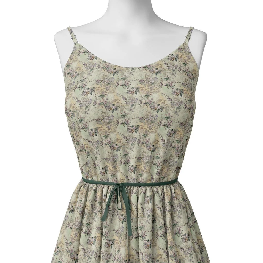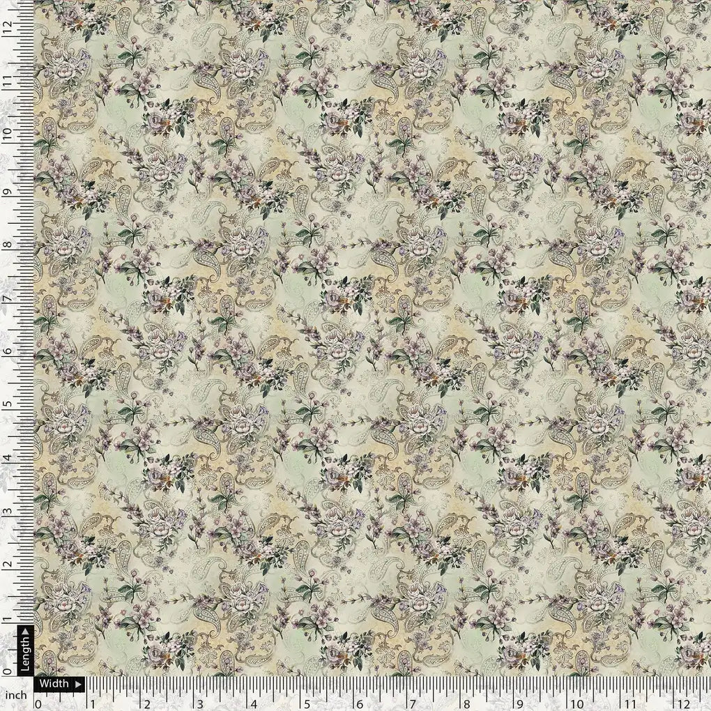 Tiny Border Paisley With Green Leaves Digital Printed Fabric - Pure Georgette