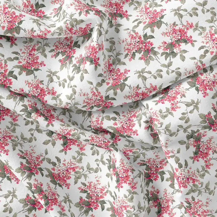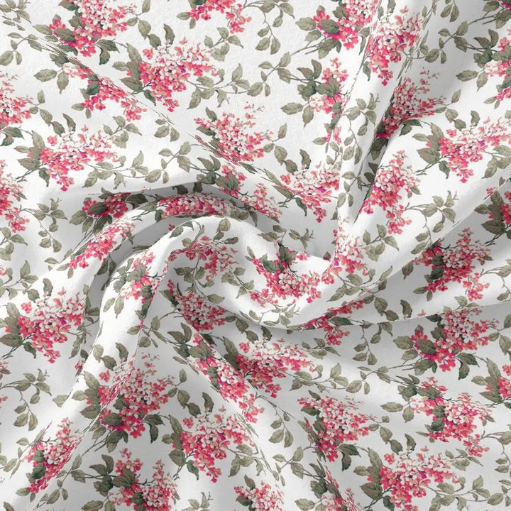 Tiny Daffodil Flower With Birch Leaves Digital Printed Fabric