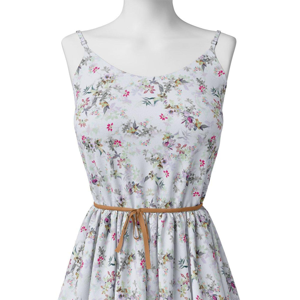 Tiny Iris With Leaves Digital Printed Fabric - Silk Crepe