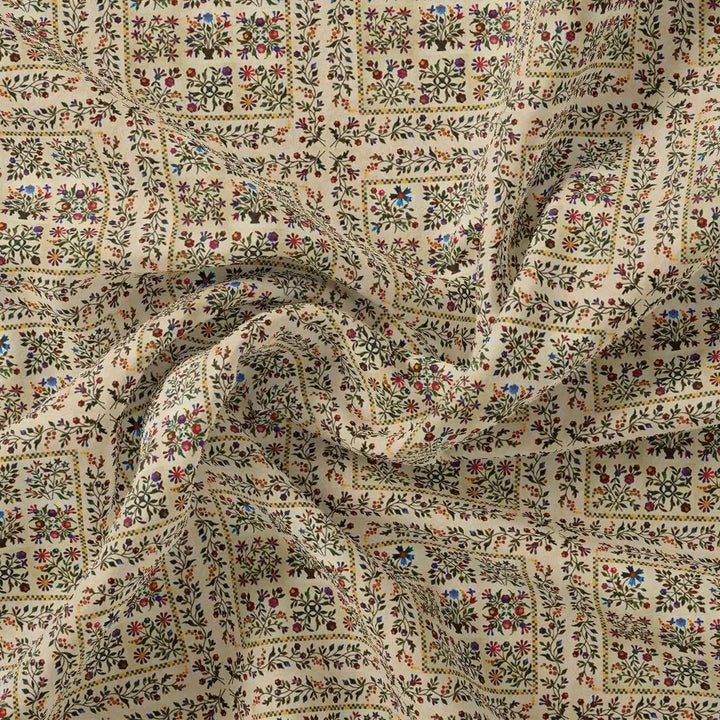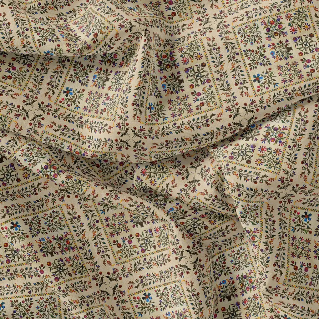 Tiny Rainbow Flowers Of Leaves Digital Printed Fabric - Pure Georgette