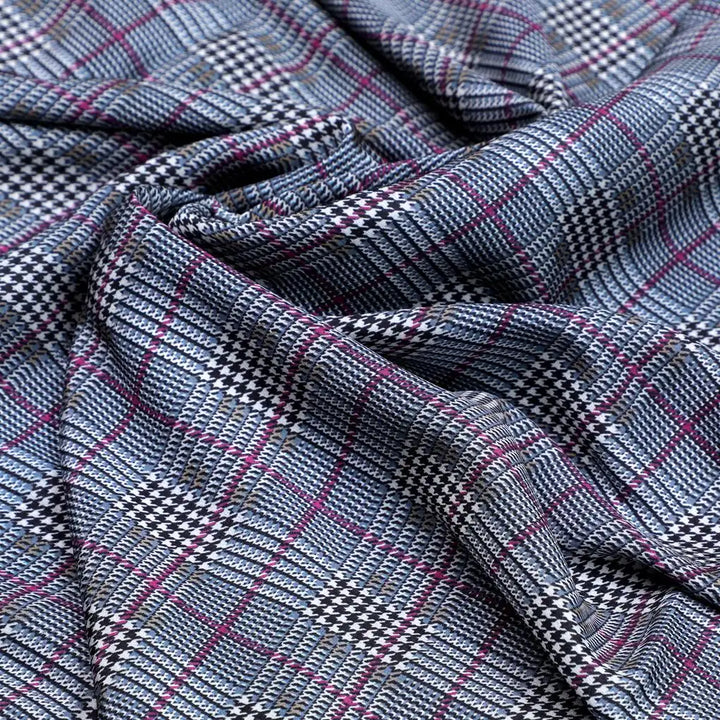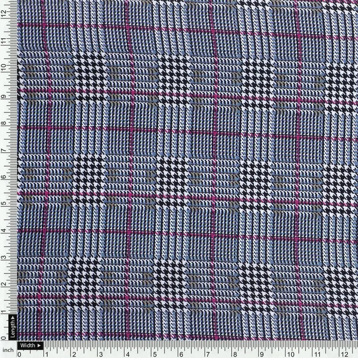 Tiny Strips Glen Checks Digital Printed Fabric - Crepe