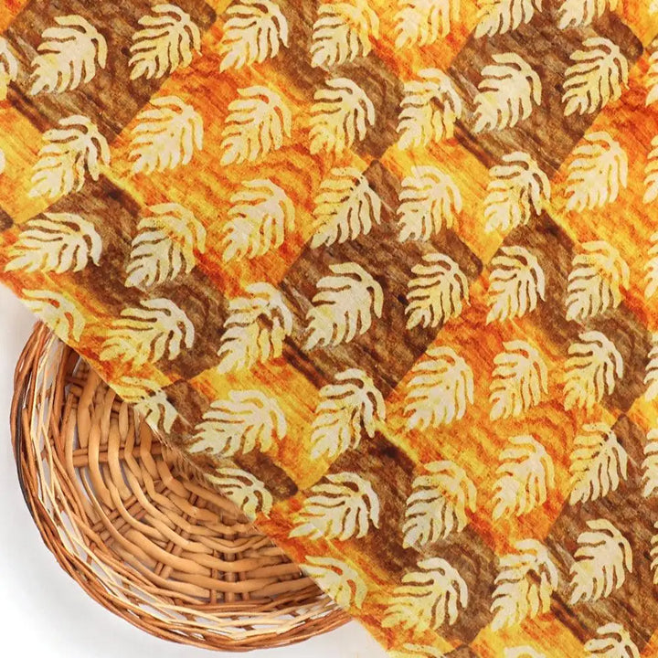 Looking for a beautiful, lightweight fabric for your next project? Check out this Tiny Walnut Yellow Leaves Kora Silk Saree Printed Fabric from FAB VOGUE Studio. This high-quality fabric is made of polyester and features a stunning leaf pattern in a vibrant yellow color. Perfect for making sarees, scarves, and more, this fabric is sure to add a unique touch to your wardrobe. Shop now at FabVogueStudio.