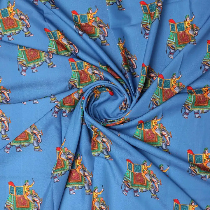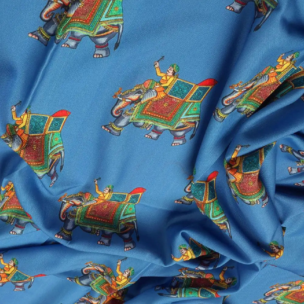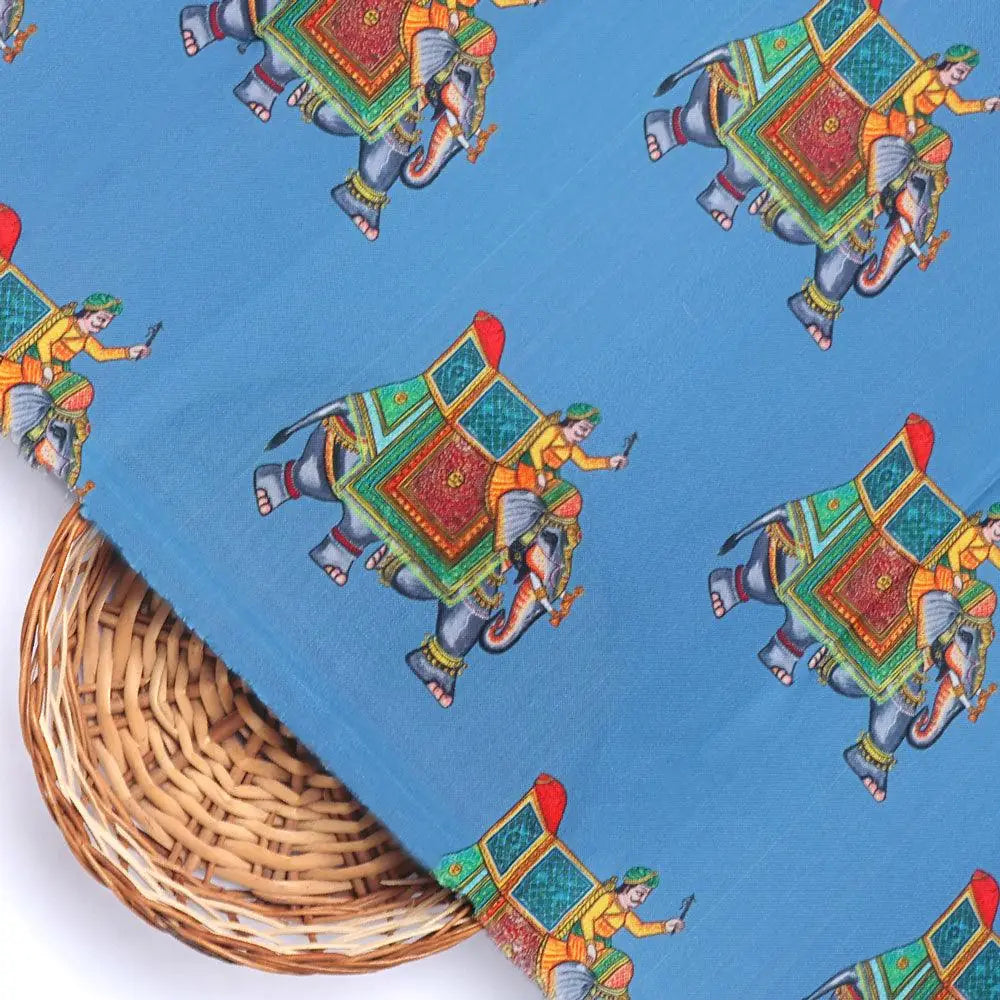 Are you looking for a traditional fabric with a modern twist? Look no further than the Traditional Elephant Motif Rayon Salwar Suits Printed Fabric from FAB VOGUE Studio. This fabric is made of high-quality polyester and rayon, making it both soft and durable. Its beautiful blue color is complemented by an intricate animal pattern, giving it a modern yet timeless look. Perfect for salwar suits and other traditional outfits, this fabric is sure to become a favorite in your wardrobe.
