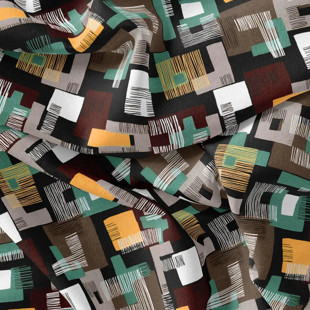 Trendy Colourful Puzzle Decorative Digital Printed Fabric - Pure Muslin