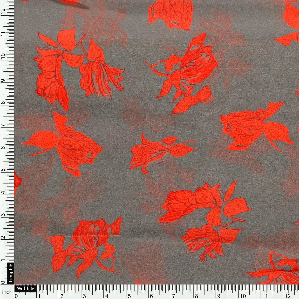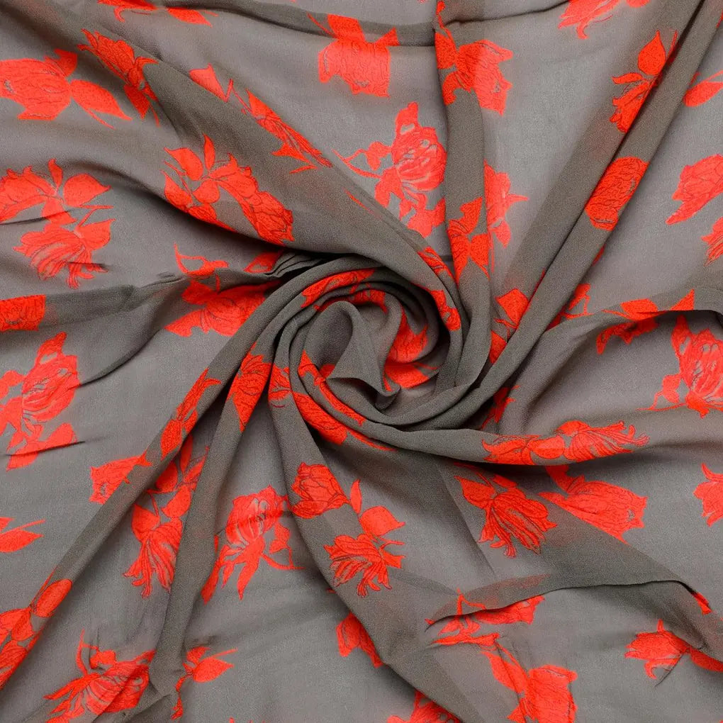 Tulips Roses With Orange Colour Digital Printed Fabric - Pure Georgette