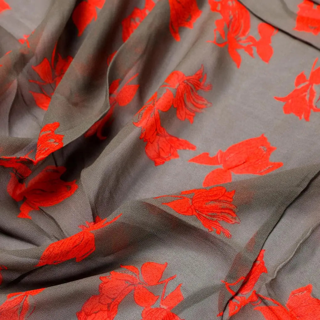 Tulips Roses With Orange Colour Digital Printed Fabric - Pure Georgette – pg 0 ta08519 110 tulips roses with orange colour digital printed fabric pure georgette 1