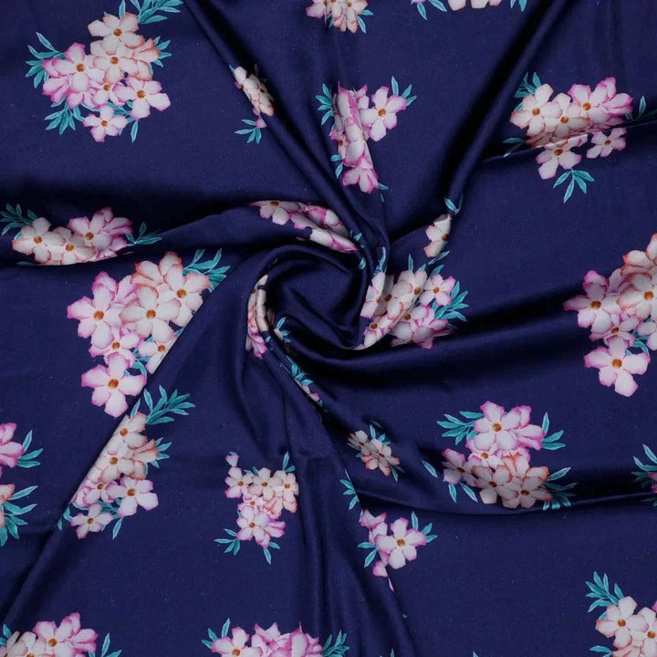 Violet Flower Bunch Digital Printed Fabric - Japan Satin
