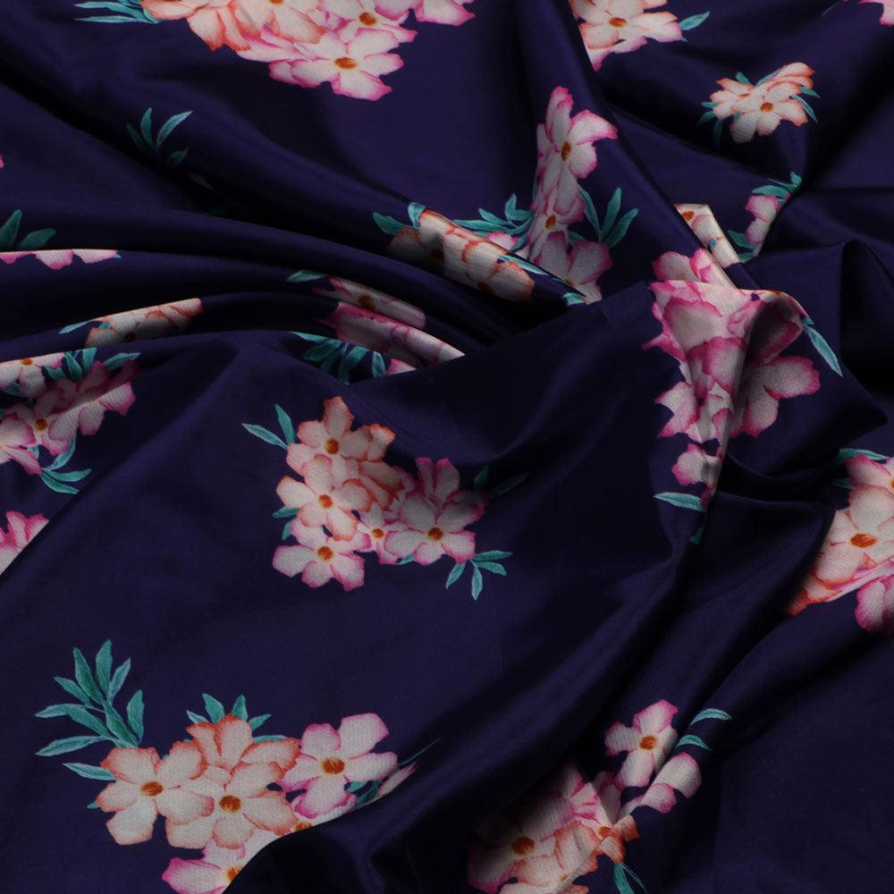 Violet Flower Bunch Digital Printed Fabric - Crepe