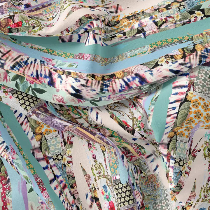 Watercolour Paint Art With Pattern Digital Printed Fabric - Pure Muslin