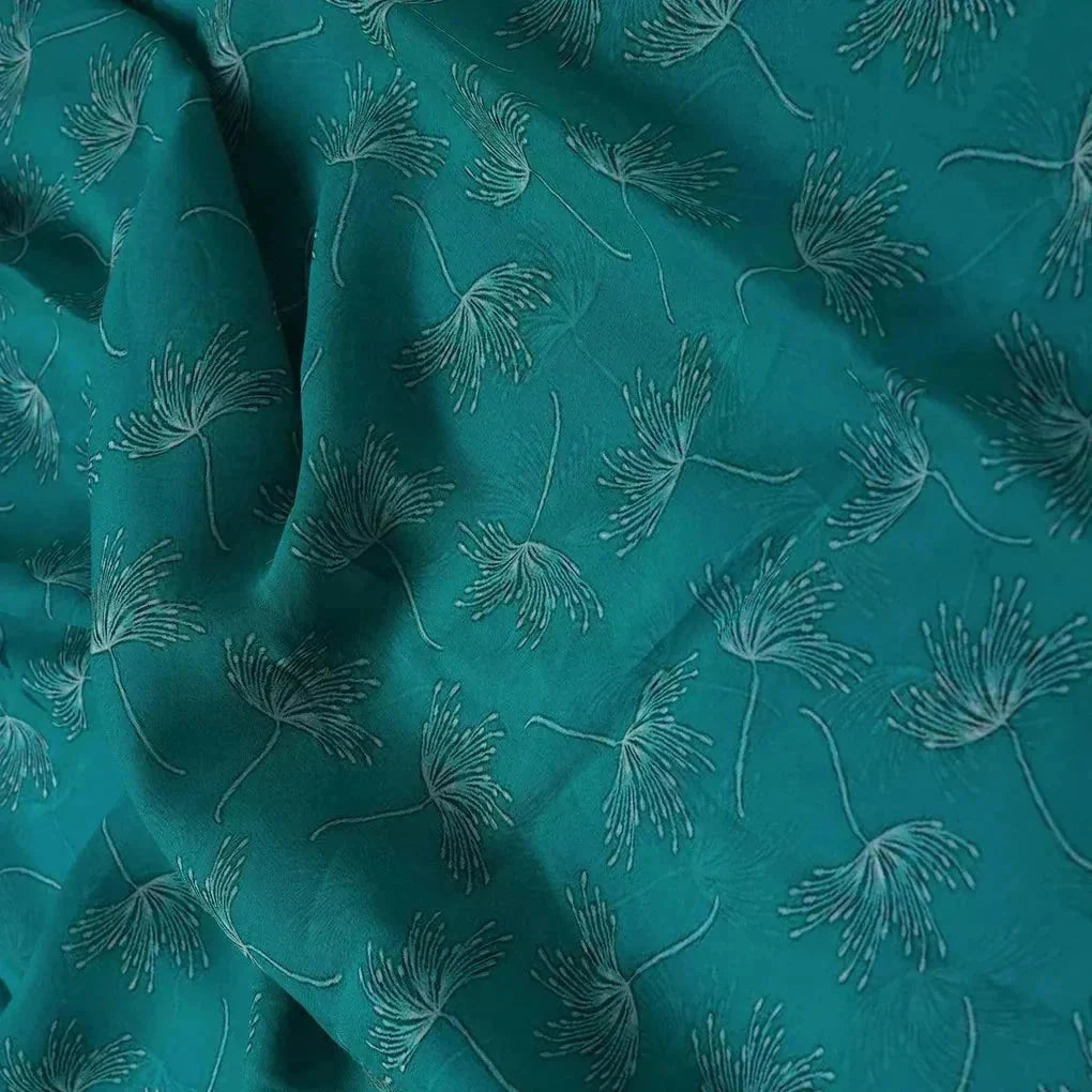 Are you looking for a beautiful, high-quality fabric for your next project? Look no further than the White Floating Flower Pure Georgette Western Wear Printed Fabric from FAB VOGUE Studio. This gorgeous fabric is made from 100% pure georgette and has a stunning ditsy pattern in a bright blue color. It is perfect for creating stylish tops, dresses, skirts and more. Whether you're making something for yourself or a special someone, this fabric is sure to impress.