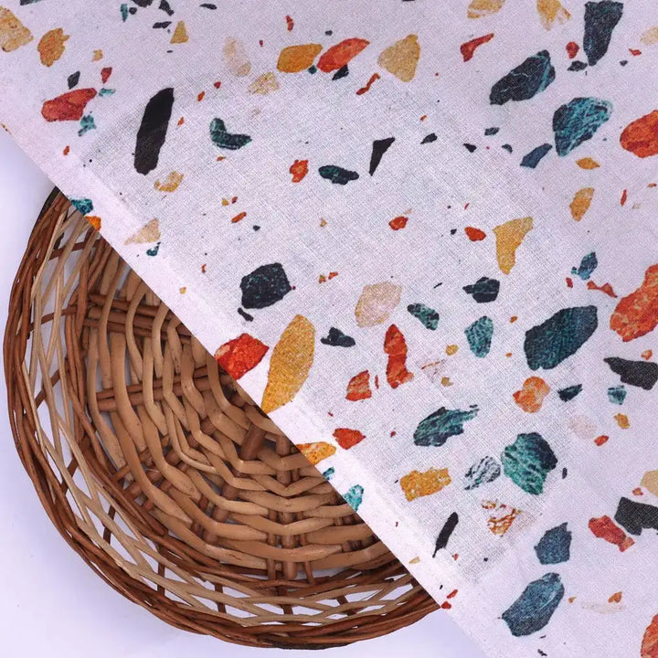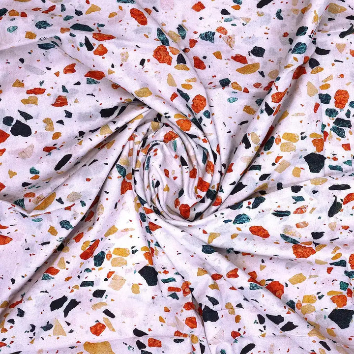 White Galay Stones Digital Printed Fabric - Pure Cotton
