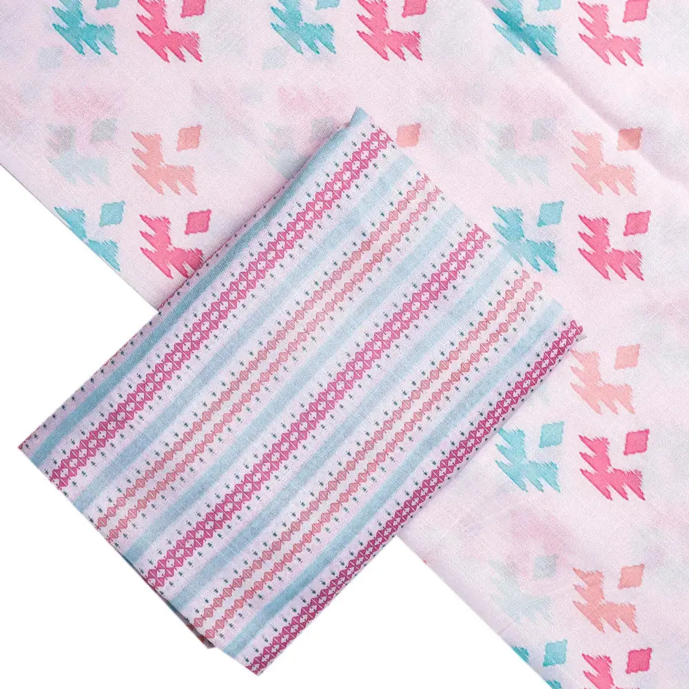 Look your best with this white linen printed unstitched fabric set. The eye-catching design features a printed fabric in a classic white shade for a timeless style. With both top and bottom fabrics at 2.5 meters each, you'll have plenty of material to work with. Create your own stylish look with this high-quality printed fabric set.